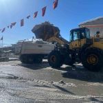 Belediye ekipleri kar yığınlarını kamyonlarla ilçe dışına taşımaya devam ediyor.