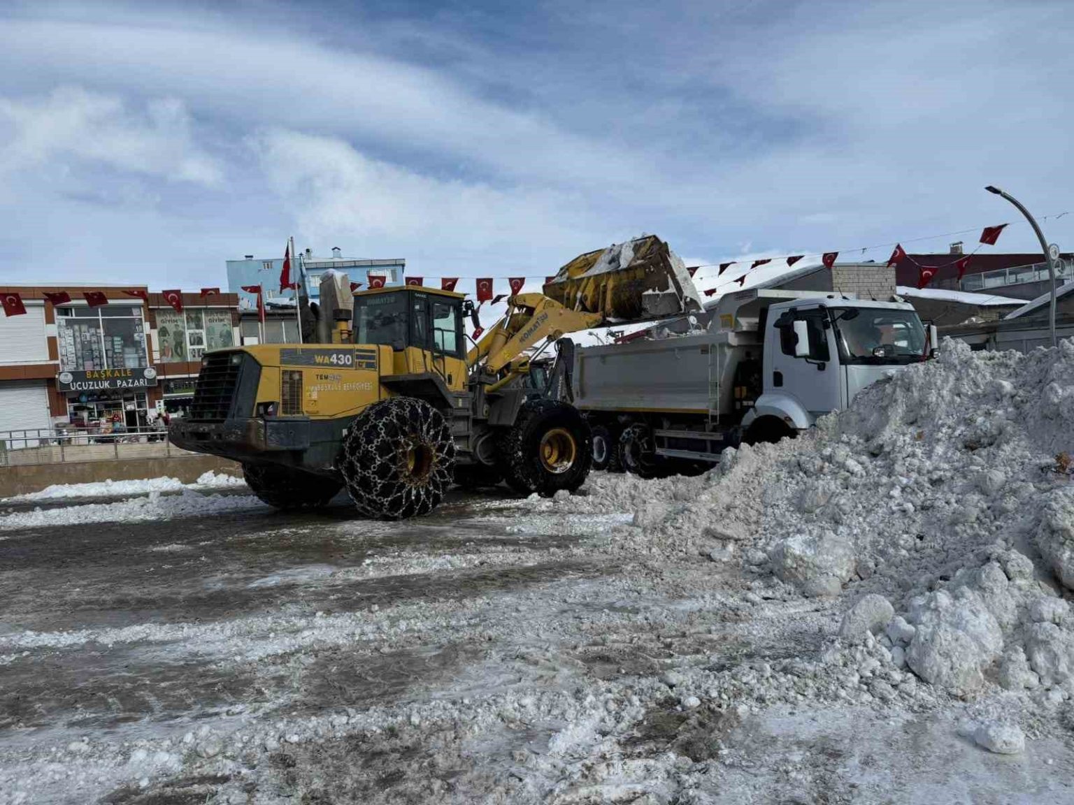Başkale’de etkili olan yoğun kar yağışı, yaşamı olumsuz etkiledi. Yağışın etkisini yitirmesinin ardından cadde ve sokaklarda biriken karın temizlenmesi için Başkale Belediyesi bünyesinde 14 araç ve 25 personelden oluşan ekip çalışmalara başladı. İlçe merkezinde toplanan kar yığınları kamyonlarla taşınırken; 1 loder, 1 greyder, 5 kazıcı yükleyici, 4 kamyon, 1 tuzlama ve küreme aracı, 2 kamyonet ile kar küreme ve tuzlama çalışmaları aralıksız devam ediyor.