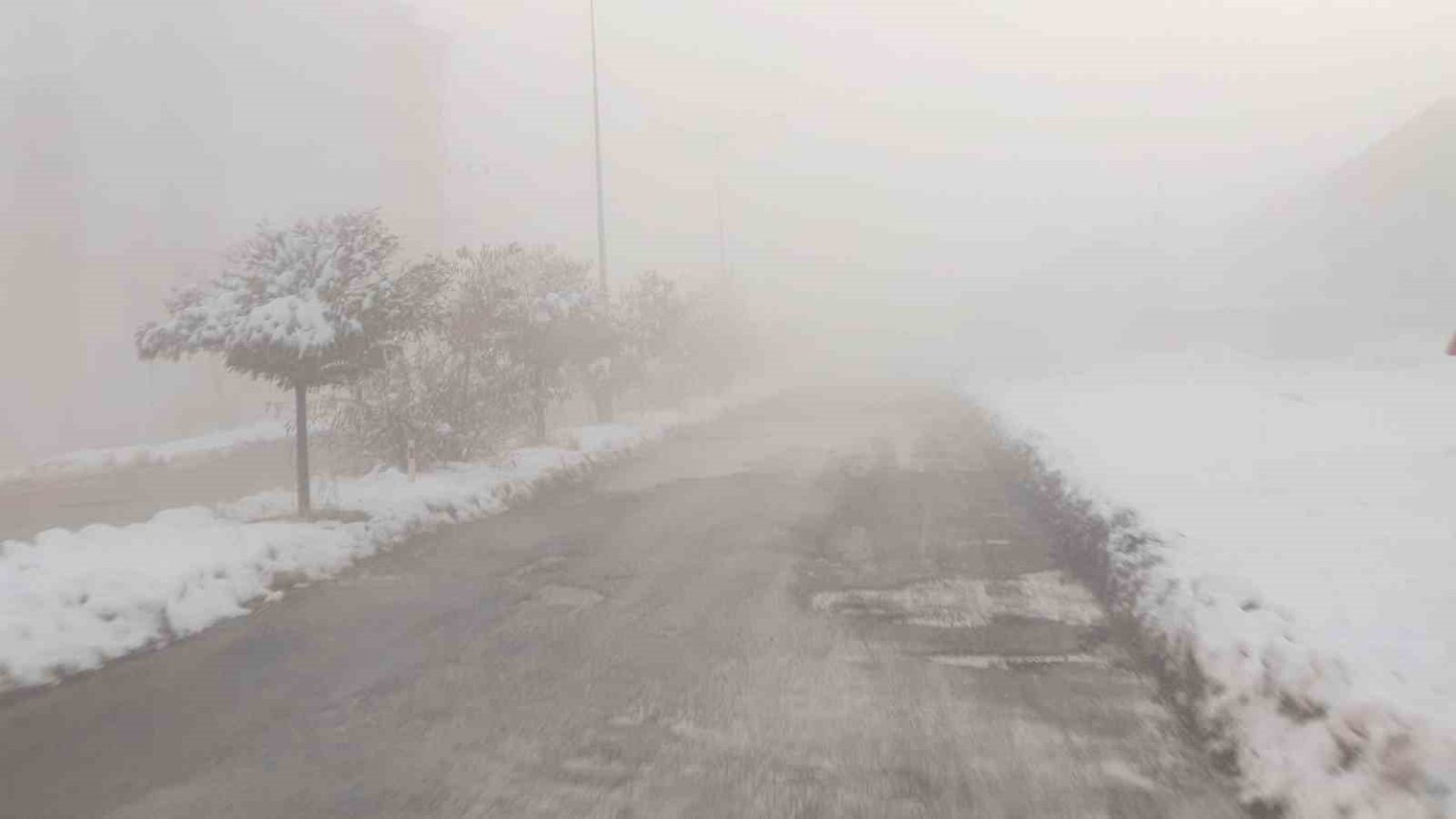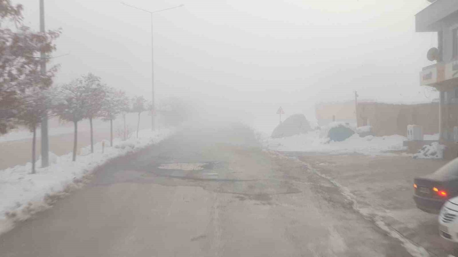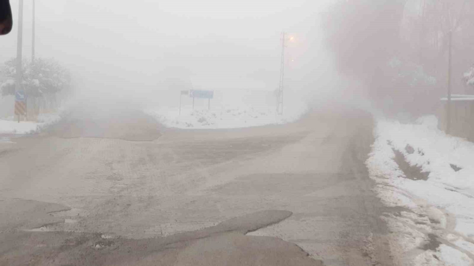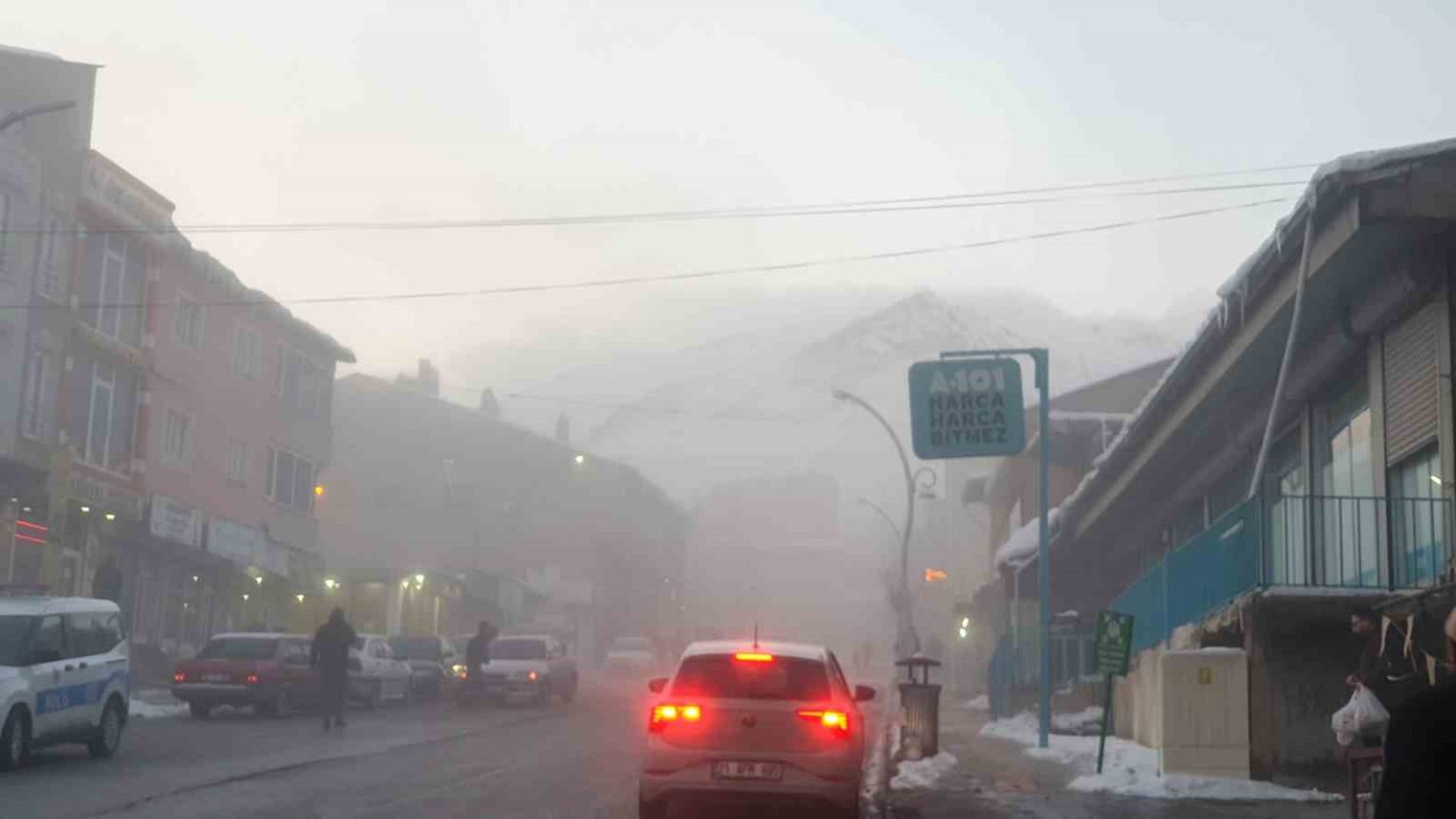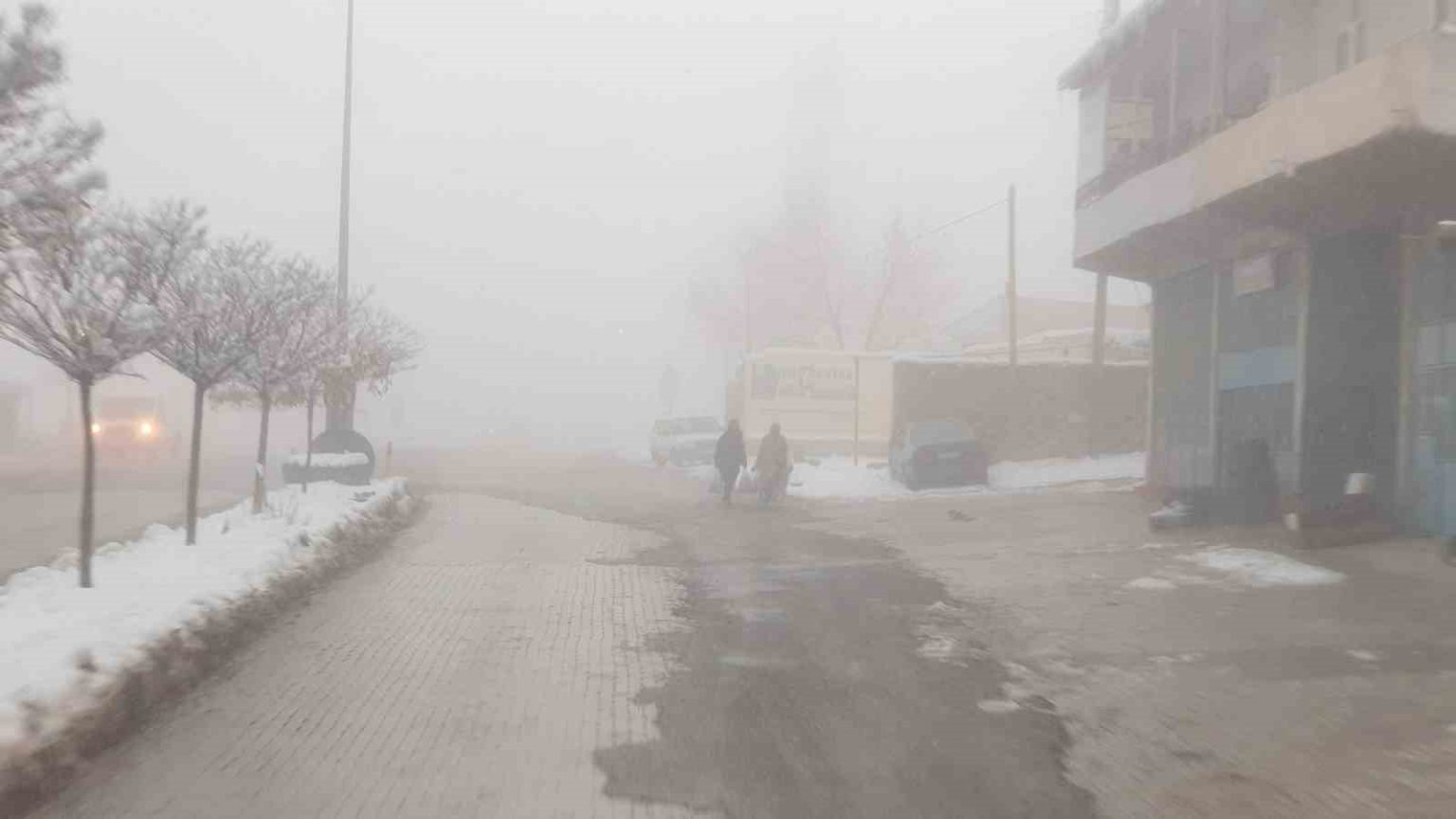 Van’ın Başkale ilçesinde etkili olan yoğun sis nedeniyle göz gözü görmüyor. Görüş mesafesi 5 metreye kadar düştü.