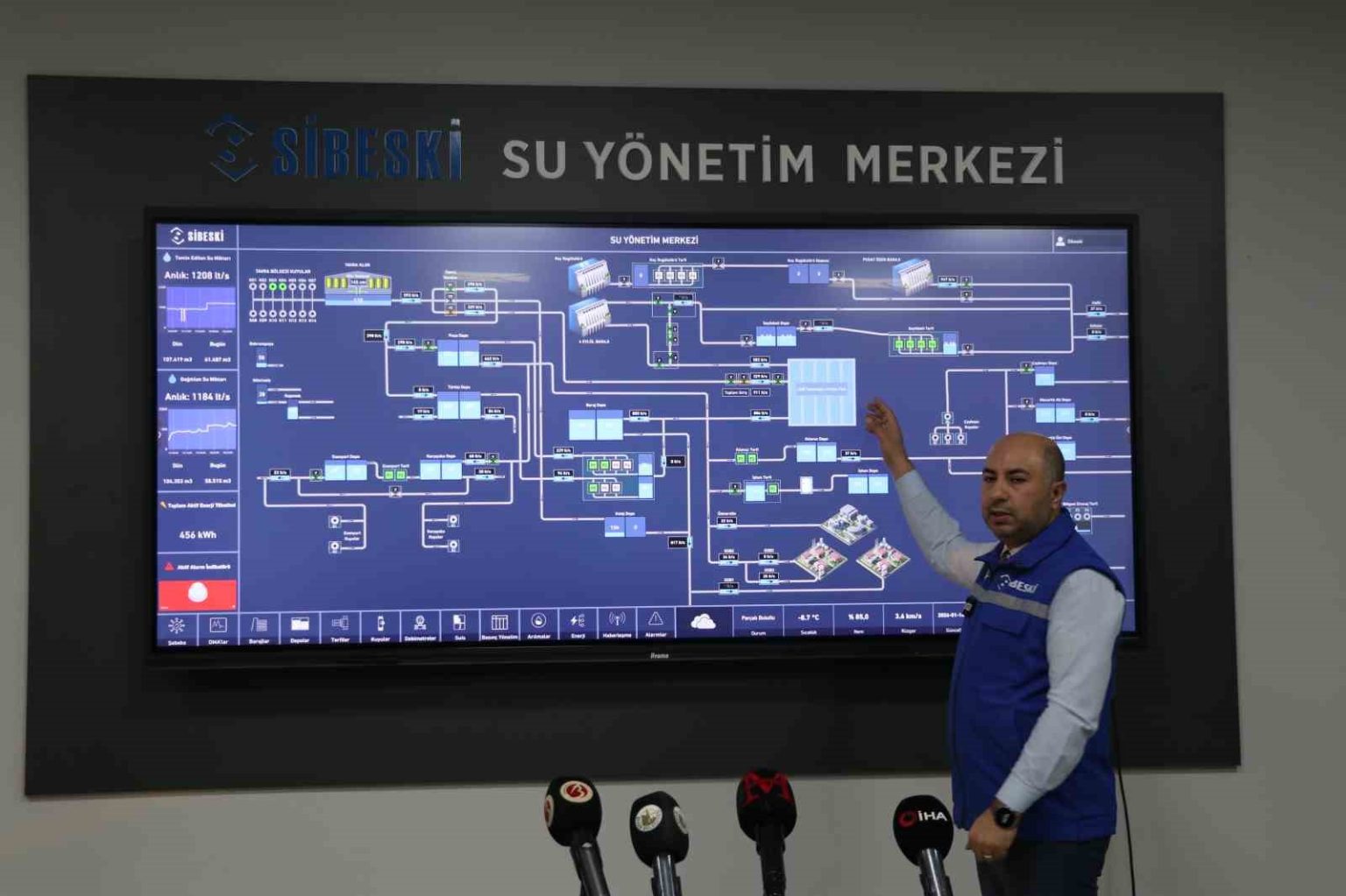 Sivas Belediyesi Su ve Kanalizasyon İşleri Müdürlüğü (SİBESKİ), içme suyu altyapısında önemli bir dönüşüm sağlayan DMA (District Metered Area – İzole Alt Bölge) sistemine ilişkin basın mensuplarıyla bilgilendirme toplantısı düzenledi. Toplantıda, sistemin çalışma prensipleri ve Sivas’a sağlayacağı katkılar yapılan sunumla anlatıldı. Hayata geçirilen, tamamen yerli ve milli yazımla üretilen DMA sistemi ise içme suyu şebekesinin belirli alt bölgelere ayrılarak her bölgenin ayrı ayrı ölçülmesini, izlenmesini ve kontrol edilmesini sağlıyor. Bu sistem sayesinde şebekedeki basınç dengeleniyor, su kayıp ve kaçakları daha hızlı tespit ediliyor, arızaların sayısı azalıyor ve gereksiz su tüketiminin önüne geçiliyor. Aynı zamanda SCADA sistemiyle entegre çalışan DMA odaları, anlık veri takibi yapılarak suyun nerede, ne kadar ve nasıl kullanıldığının net bir şekilde görülmesine imkân tanıyor. Böylece hem su kaynakları korunuyor hem de ciddi bir ekonomik tasarruf sağlanıyor. Sunumun ardından konuşan Sivas Belediye Başkanı Adem Uzun, göreve geldikleri ilk günden itibaren su yönetimiyle ilgili ciddi eksiklikler tespit ettiklerini ifade etti. Başkan Uzun, “Geldiğimiz ilk gün baktığımızda barajdan çıkan ve depolardan çıkan suyu görebiliyorduk ancak depolara giren suyu bazı noktalarda göremiyorduk. Şebekelerle ilgili ise elimizde sağlıklı bir veri yoktu. Sadece sınırlı noktalarda debimetre ölçümleri yapılıyordu” dedi.
