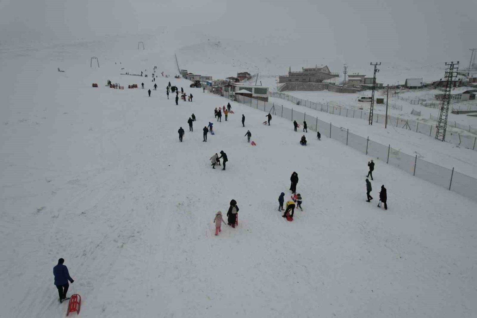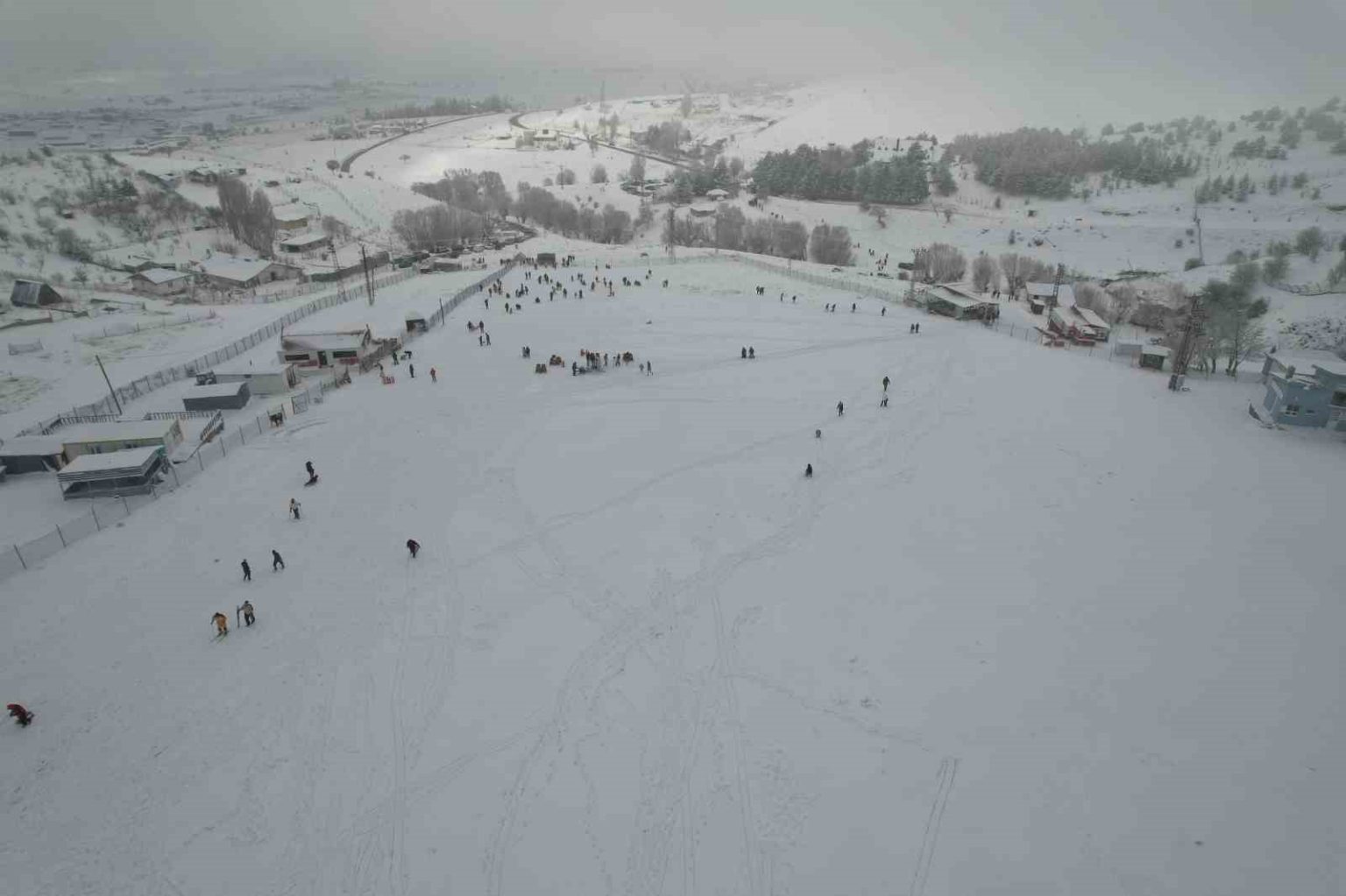 Yılbaşı gecesi etkisini gösteren kar yağışının ardından beyaz bürünen Elmadağ Kayak Merkezi, tatilini değerlendirmek isteyen Ankaralıların buluşma noktası oldu.
