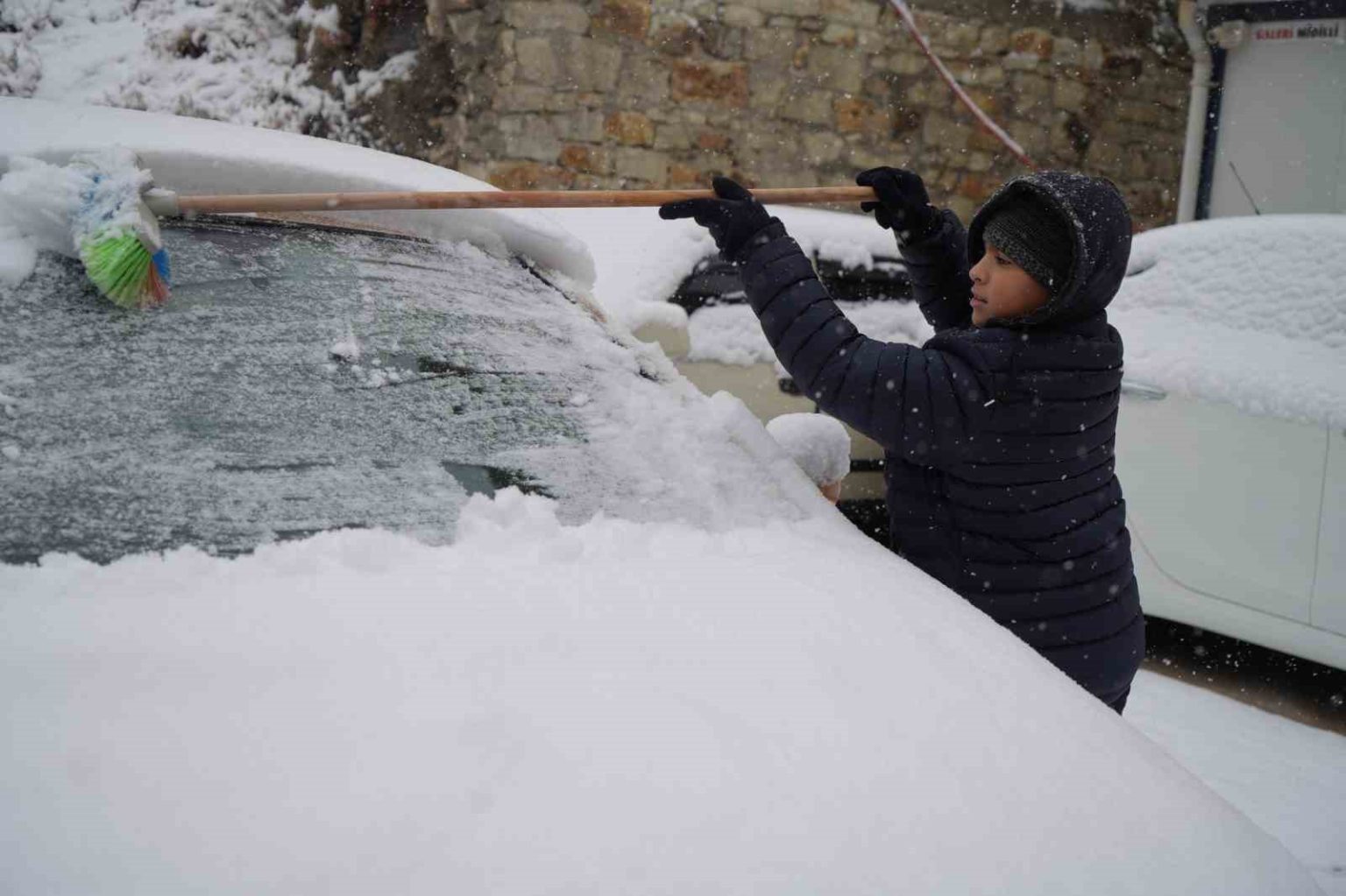 Babasına yardım ederek iş yerinin önünde biriken karları temizleyen Doğukan Midilli ise, “Sabah kar yağdığını görünce çok sevindim. Önce arkadaşlarımla kar topu oynadım, şimdi de babama yardım ediyorum” dedi.