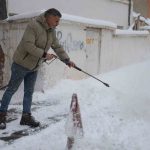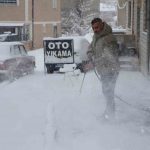 Bayburt’ta aralıksız devam eden kar yağışıyla kentte kar kalınlığı yer yer 10 santimetreye ulaştı. Yoğun kar nedeniyle vatandaşlar iş yerlerinin önünü kürek ve süpürgeyle temizlerken, oto yıkamacı İsa Karahan ise farklı bir yol izledi.