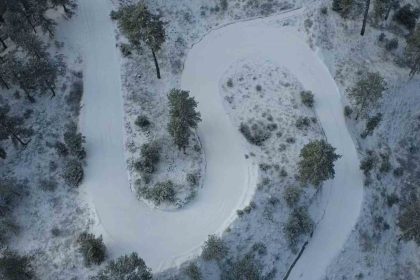 Bayburt’ta yoğun kar yağışı nedeniyle okulların tatil edilmesini fırsat bilen çocuklar, soluğu sokaklarda aldı. Karla kaplanan yokuş, çocuklar için adeta kayak pistine dönüştü.