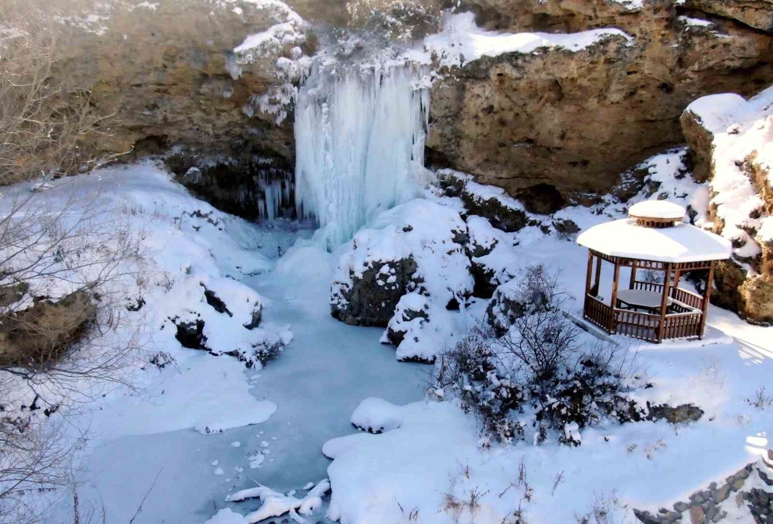 Bayburt’ta Sırakayalar Şelalesi buz tuttu
