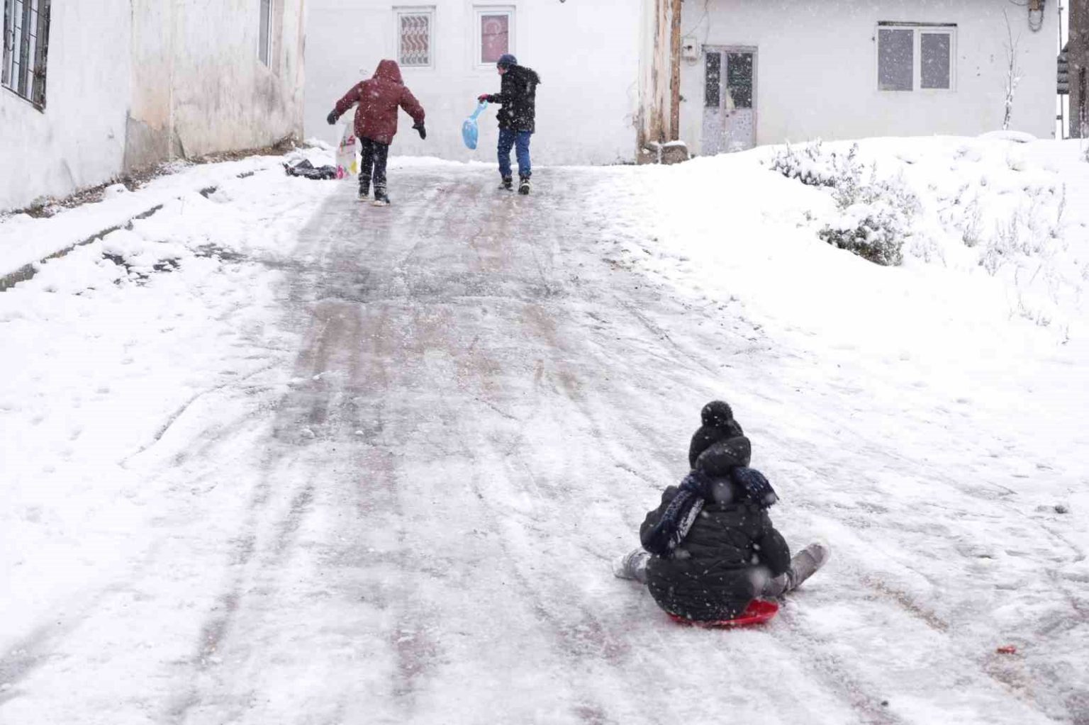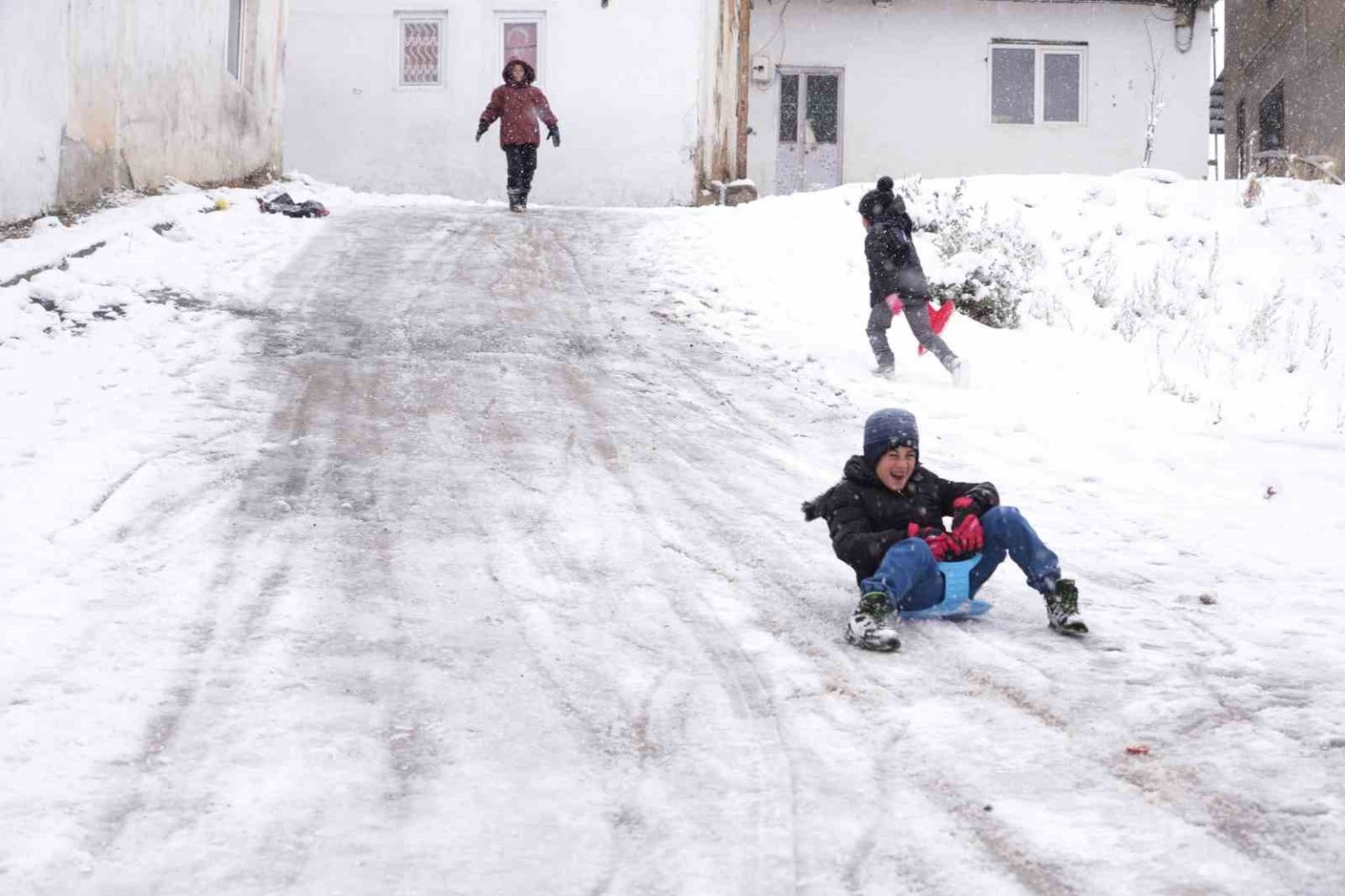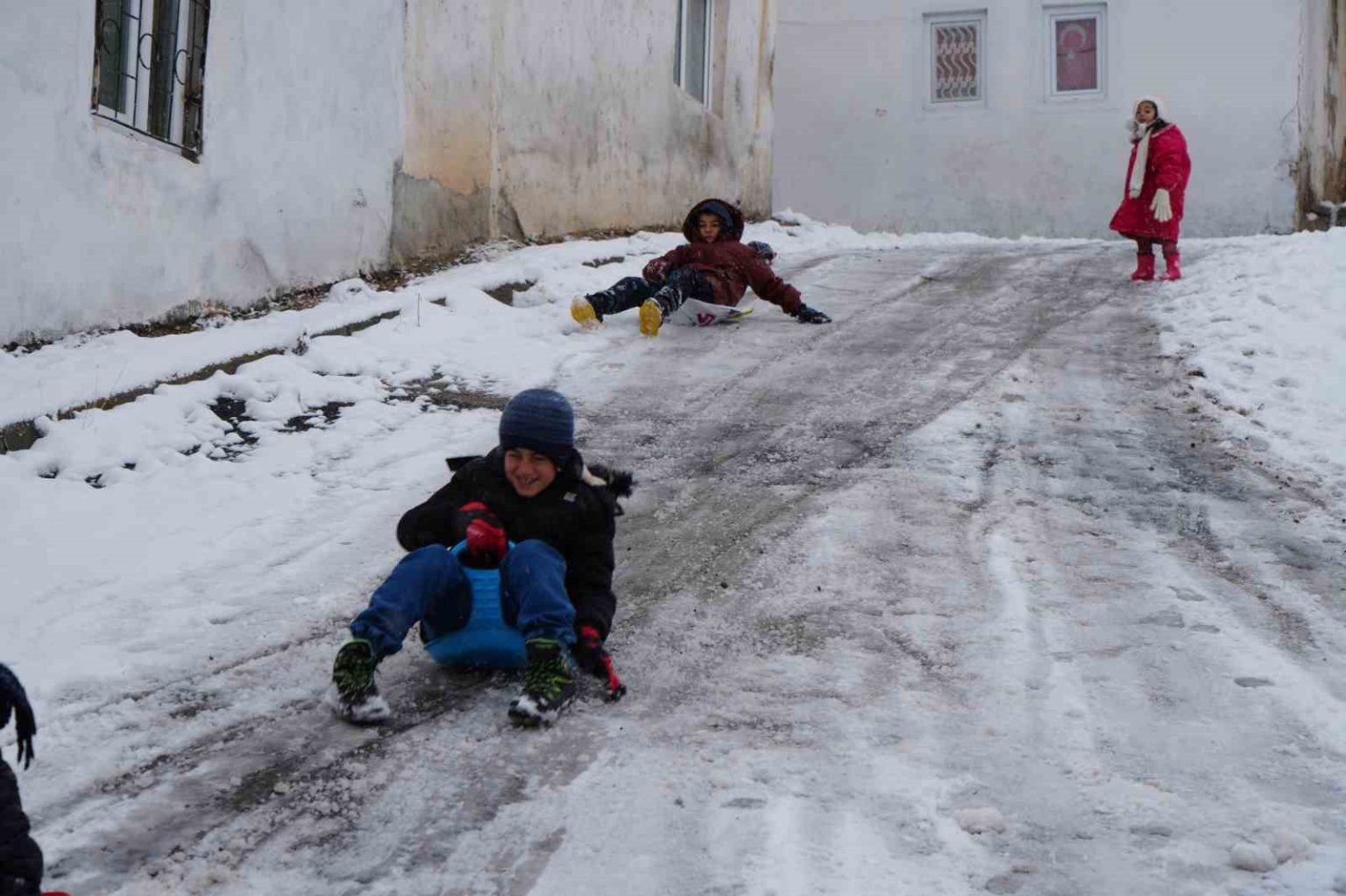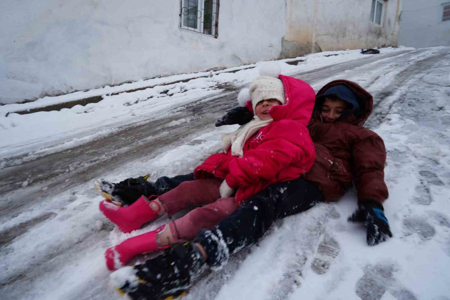 Ataner kardeşlerin mutlu hallerini gören Abdullah Midilli de kardeşi Hümeyra’yı yanına alarak, eğlenceye katıldı. 2 kişiyle başlayan kar keyfi, kısa sürede 4 kişilik bir grup aktivitesine dönüştü. Ataner kardeşler poşetle, Midilli kardeşler ise plastik kayak tahtasıyla dik yokuştan aşağı süzülerek karın tadını doyasıya çıkardı.