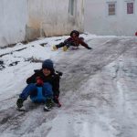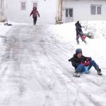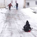 Bayburt’un köklü mahallelerinden biri olan Şingah Mahallesi’nde kar yağışını fırsat bilen çocuklar, karla kaplanan dik yokuşu kayak pistine çevirdi. Poşet ve plastik kayak tahtalarıyla kayan çocuklar, soğuk havaya aldırış etmeyip, gönüllerince eğlendiler.