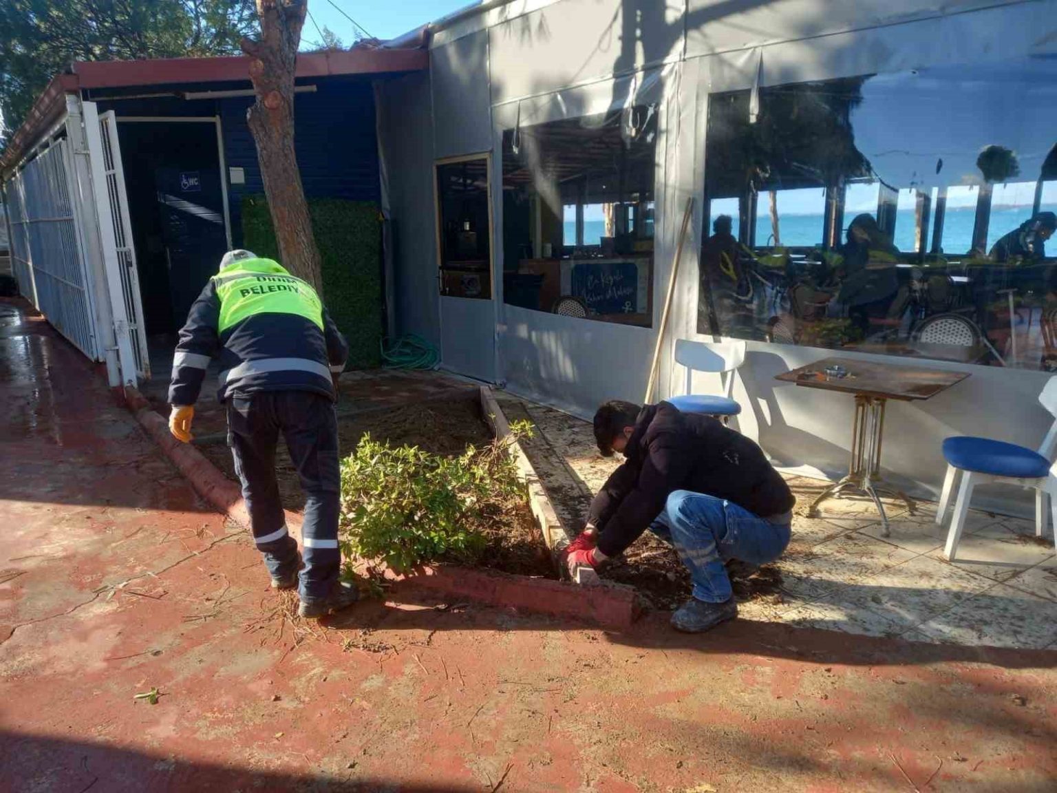 Öte yandan Fevzipaşa Mahallesi 4055 Sokak’ta zemin düzeltme çalışmaları tamamlanırken; 5605, 5004 ve 5007 sokaklarda greyder ile yol düzenleme çalışmaları gerçekleştirildi. Ayrıca Barış Cafe girişine kolay erişim rampası yapılarak erişilebilirlik sağlandı, bordür döşeme çalışmalarıyla çevre düzenlemesi desteklendi. İlçede etkisini kuvvetli şekilde gösteren fırtına nedeniyle zarar gören Soğuk Su Plajı’ndaki seyyar tuvalet ile Barış Cafe Plajı’nda bulunan cankurtaran kulesinin bakım ve onarım işlemleri yapılıyor.
