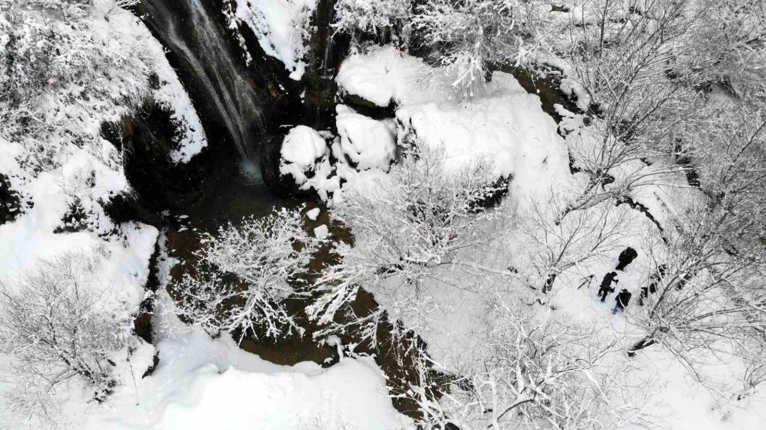 Beyaz gelinliğini giyen Girlevik Şelalesi kışın da göz kamaştırıyor
