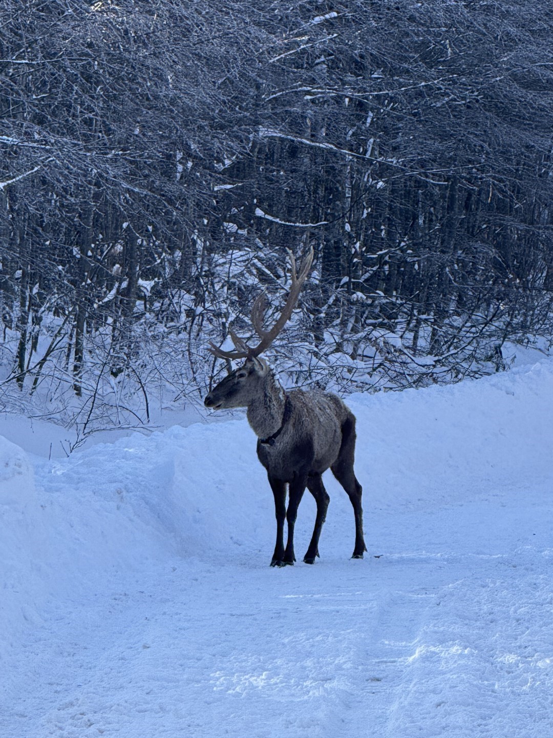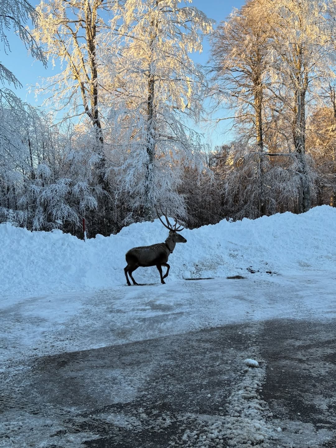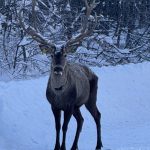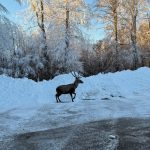 Beyaza bürünen doğada kızıl geyik sürprizi