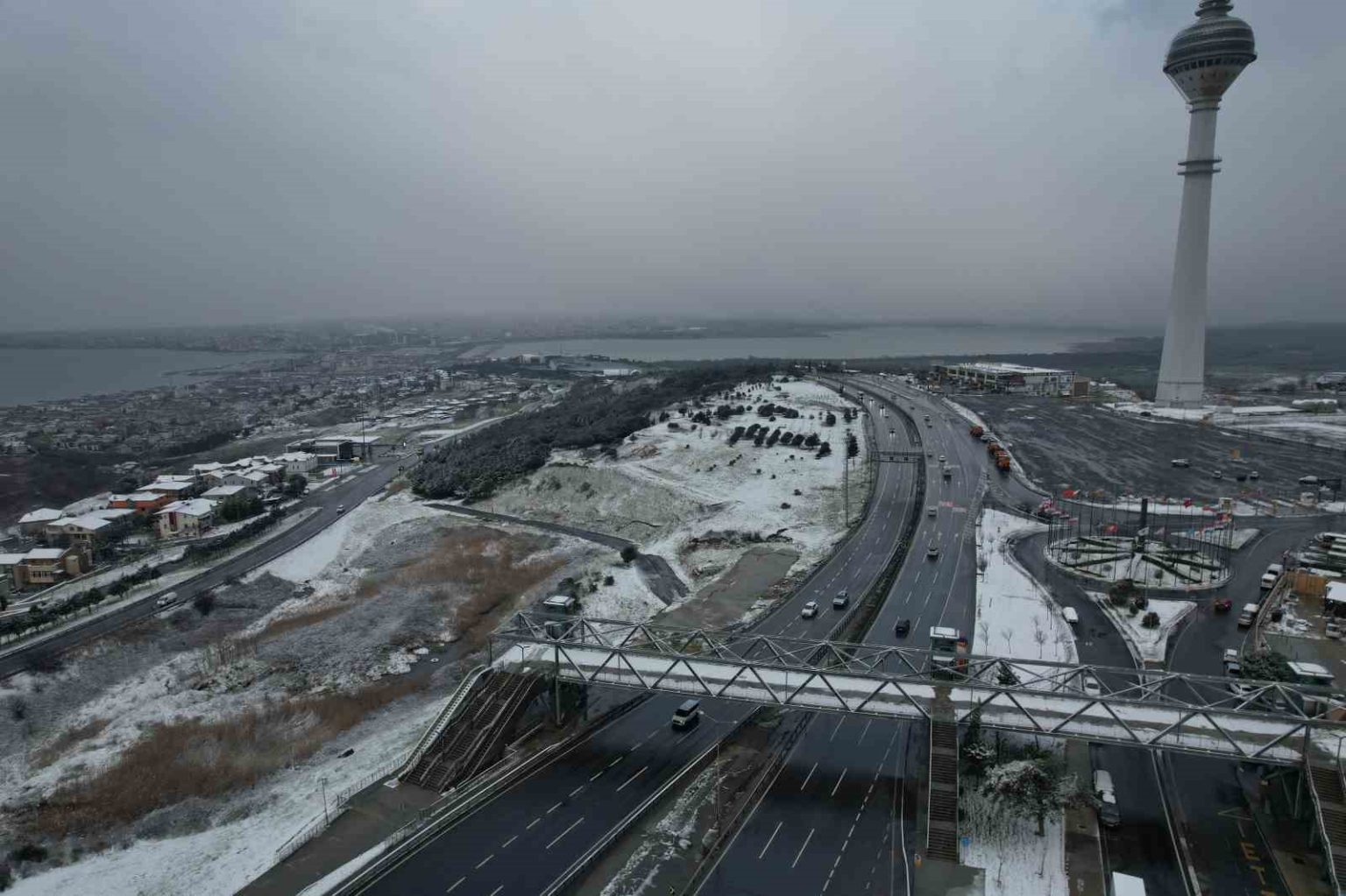 İstanbul Beylikdüzü’nde karla kaplanan alanlar havadan görüntülendi.