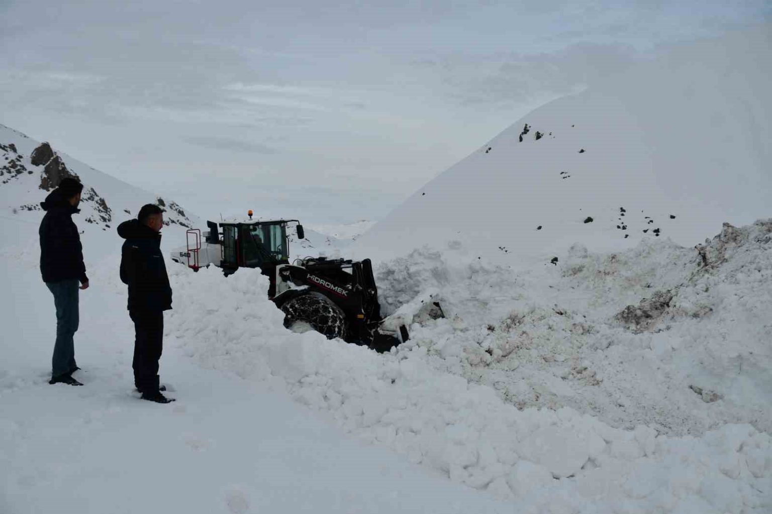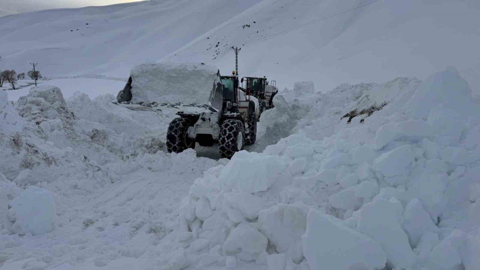 Şırnak’ın Beytüşşebap ilçesinde kar kalınlığının yer yer 3 metreyi bulduğu bölgede ekiplerin yol açma çalışmaları devam ediyor.