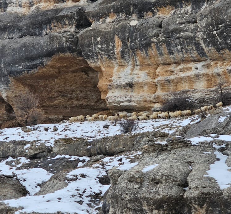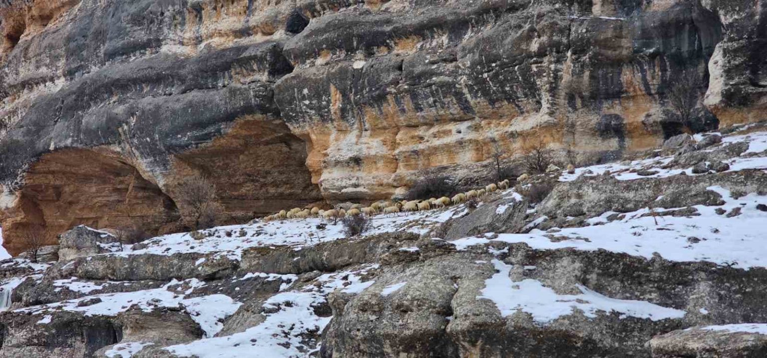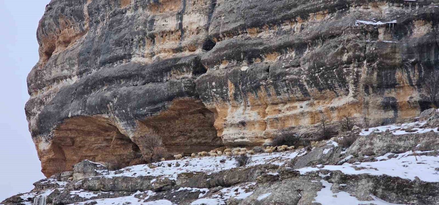 Malatya’da etkili olan yoğun kar sonrası üreticiler, hayvanlarını bin 600 rakımdaki kayalıklara çıkardı.