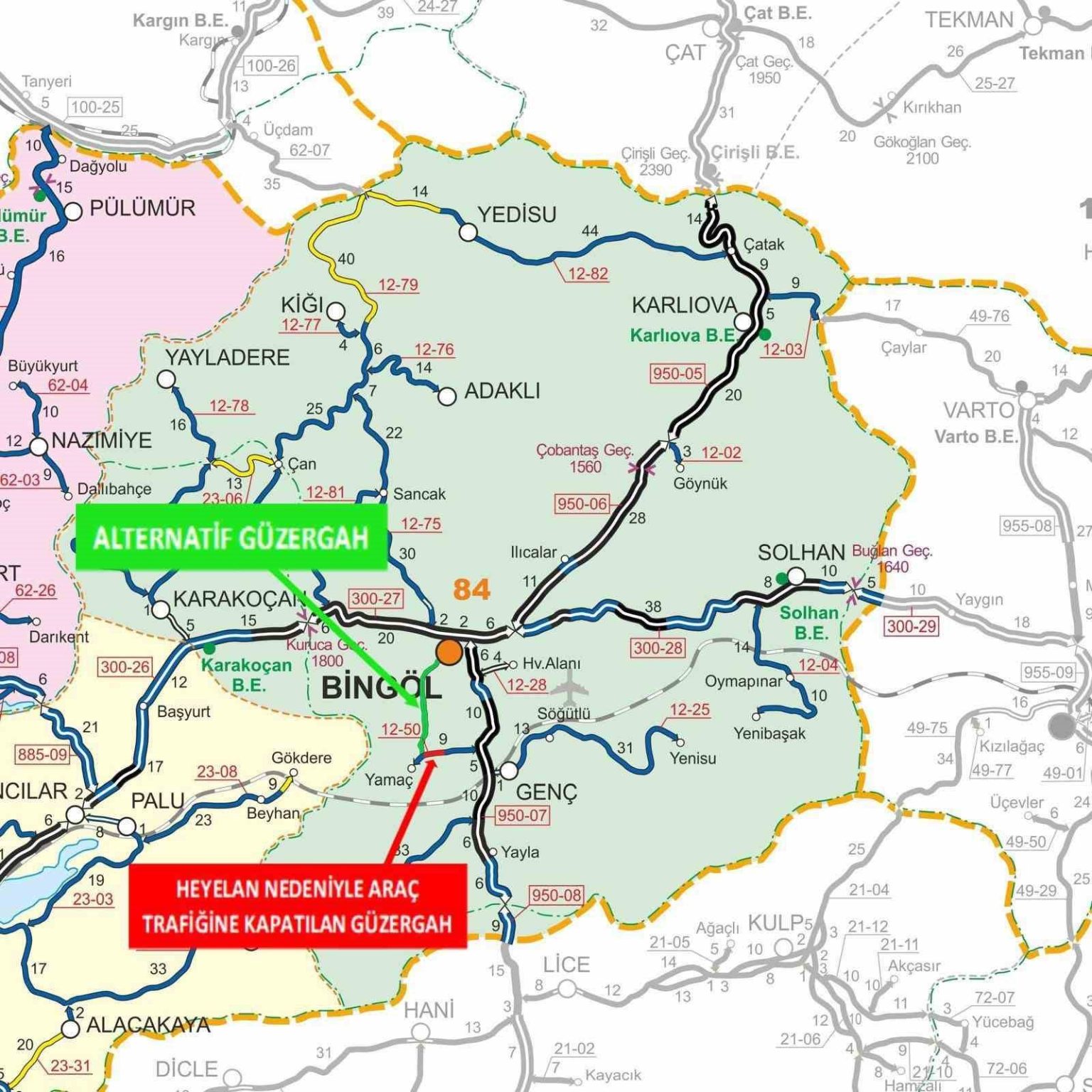 Bingöl Valiliği’nden yapılan açıklamada, ” Ayrım-Yamaç il yolunun 07+200 ile 07+500 km’leri arasında heyelandan dolayı yol gövdesinde oturma meydana gelmiştir. Trafik güvenliği açısından risk barındırdığı tespit edilen yol, alternatif güzergah belirlenmek suretiyle, 05.04.2026 tarihinde saat 00:45 itibarıyla araç trafiğine kapatılmıştır” denildi.