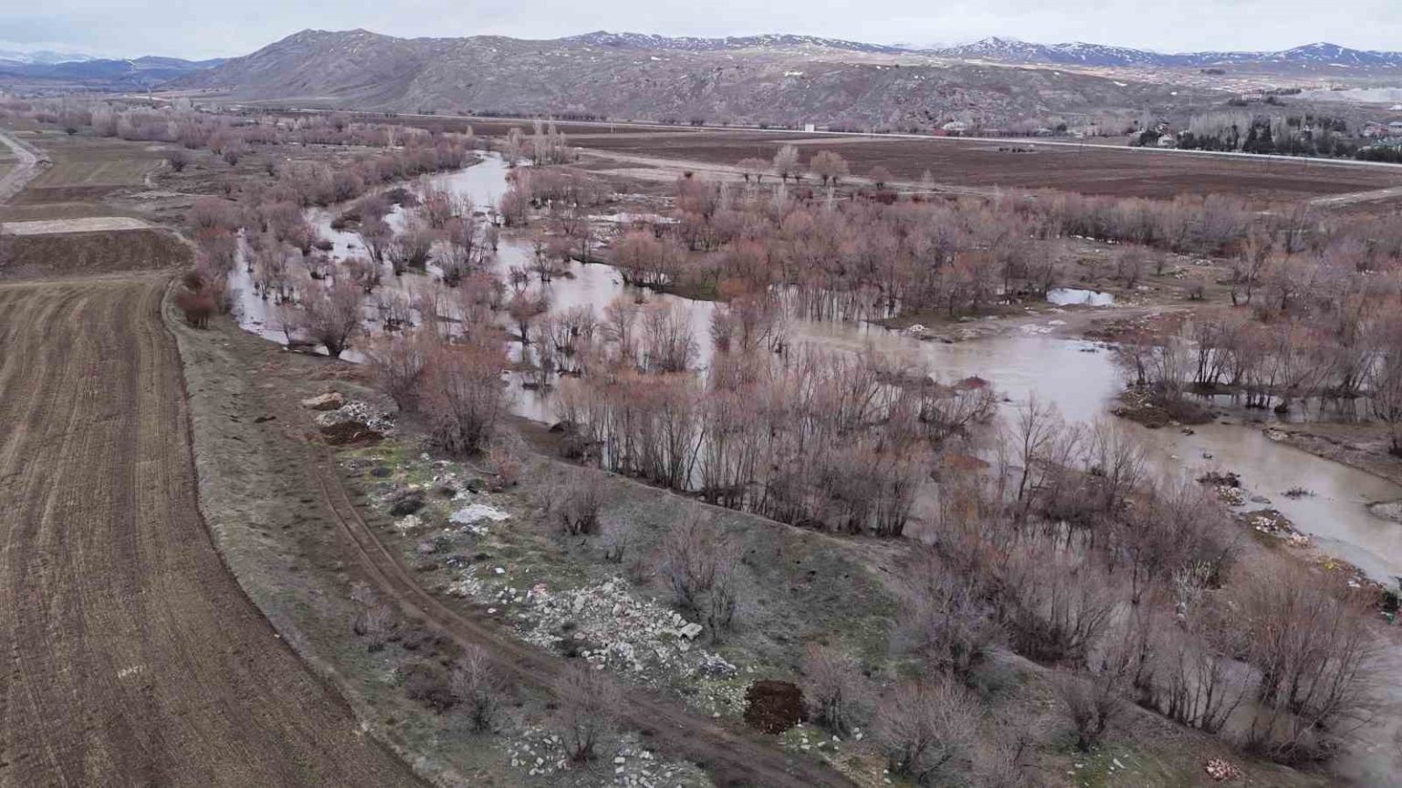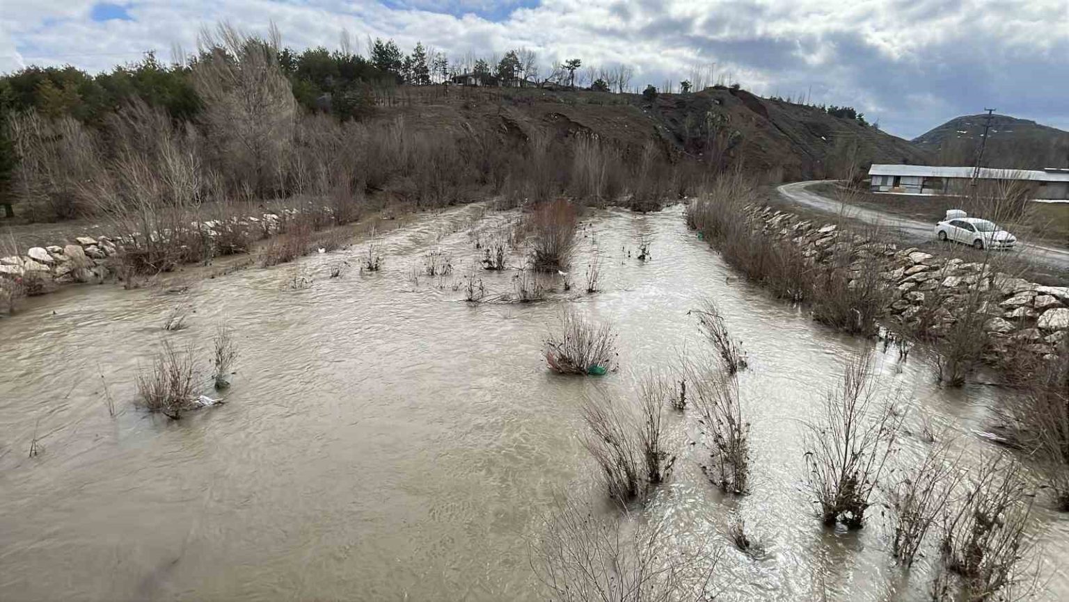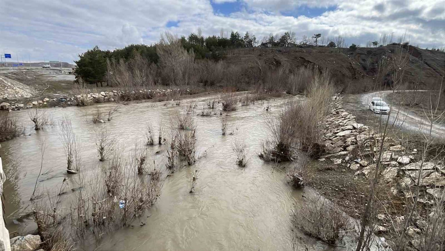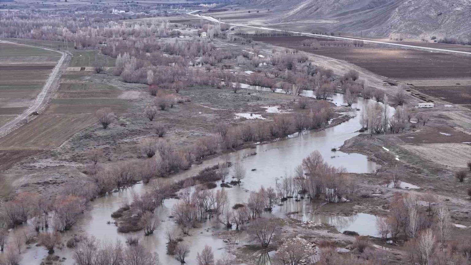 Sivas’ta bulunan ve bir dönem tamamen kuruyan Koru nehri, karların erimesiyle yeniden coştu.