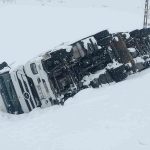 Bitlis’te etkili olan yoğun kar yağışı ve tipi, trafik kazalarını da beraberinde getiriyor. Bitlis-Tatvan karayolunda sabah saatlerinde meydana gelen kazada bir tır yolun kenarına devrildi.