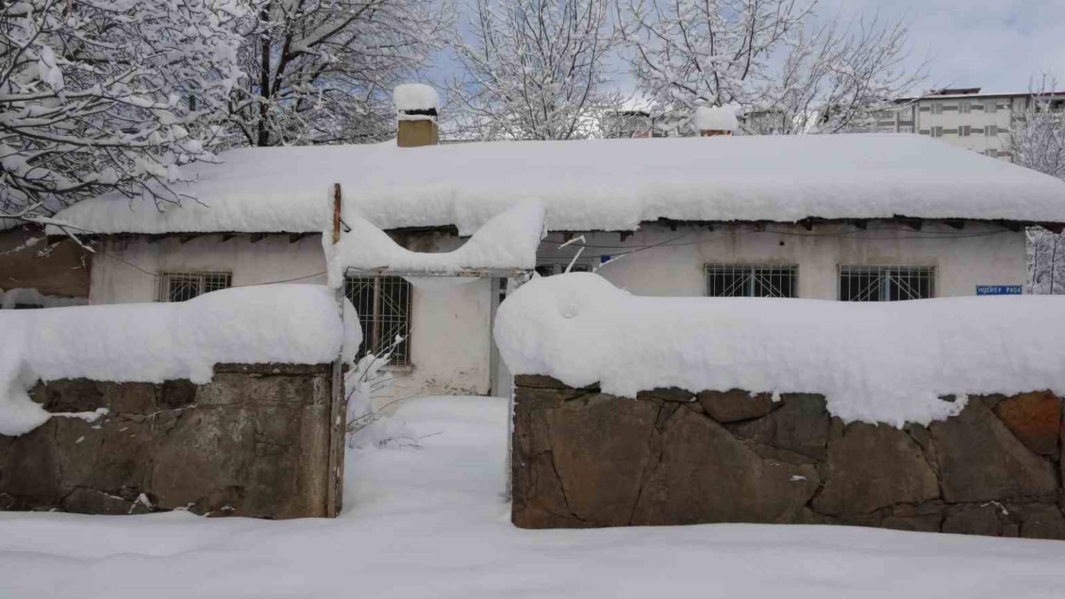 Bitlis’te günlerdir yağan kar yağışı nedeniyle tek katlı evler, arabalar ve yön levhaları kardan adeta kayboldu.