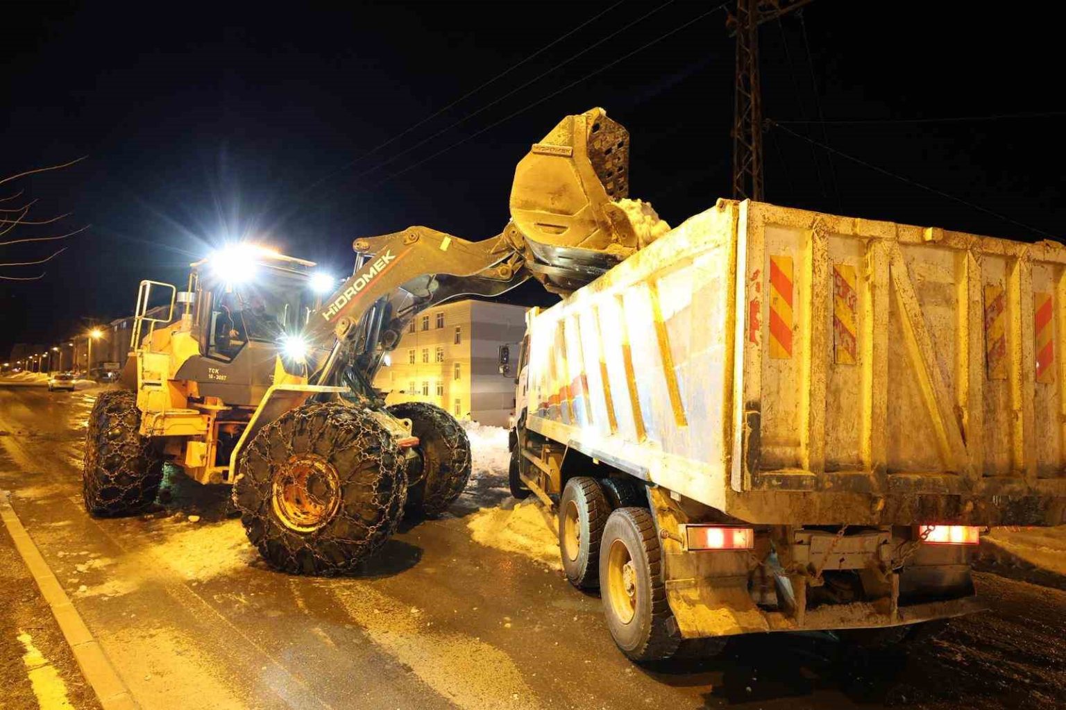 Bitlis’te kaldırımlardaki karlar kamyonlarla taşınıyor