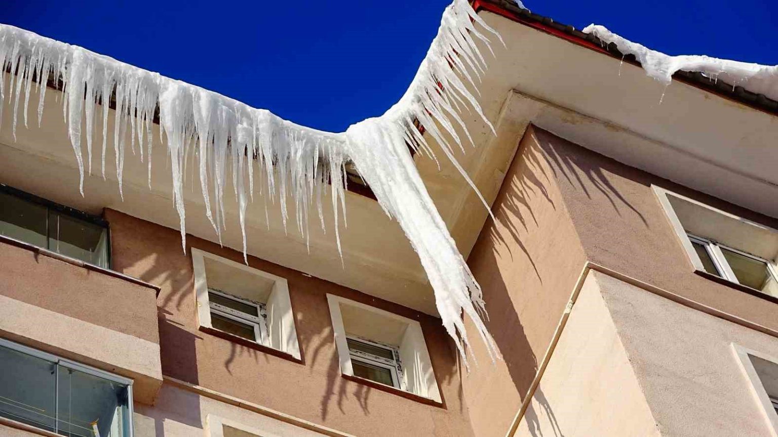 Özellikle yaya ve araç trafiğinin yoğun olduğu cadde ve sokaklarda büyük risk oluşturan buz sarkıkları, vatandaşları tedirgin ediyor.