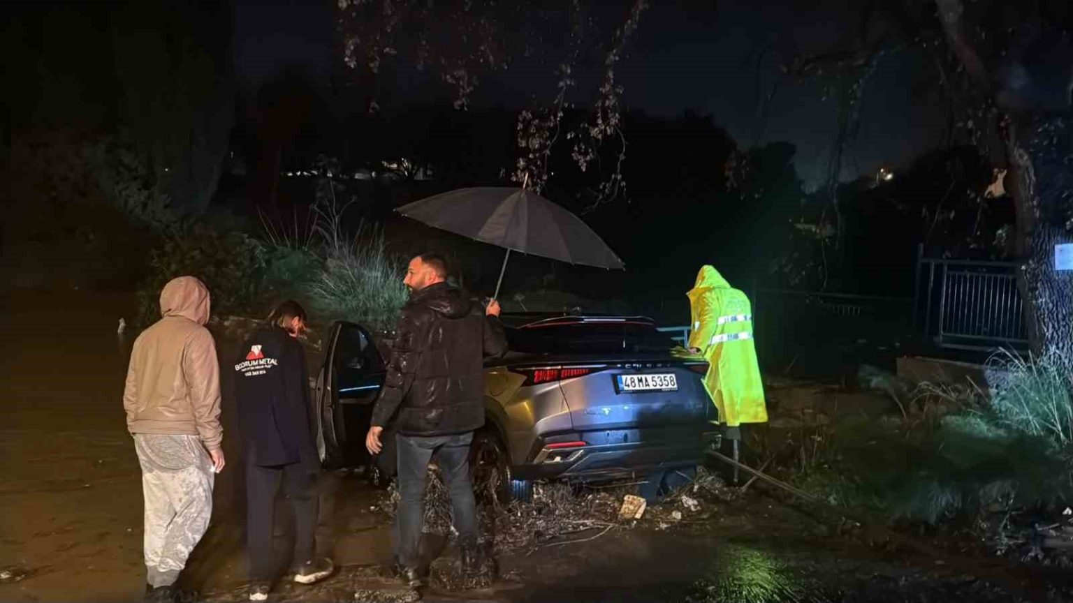 Bodrum’u sağanak vurdu: Araç sürüklendi, evleri su bastı