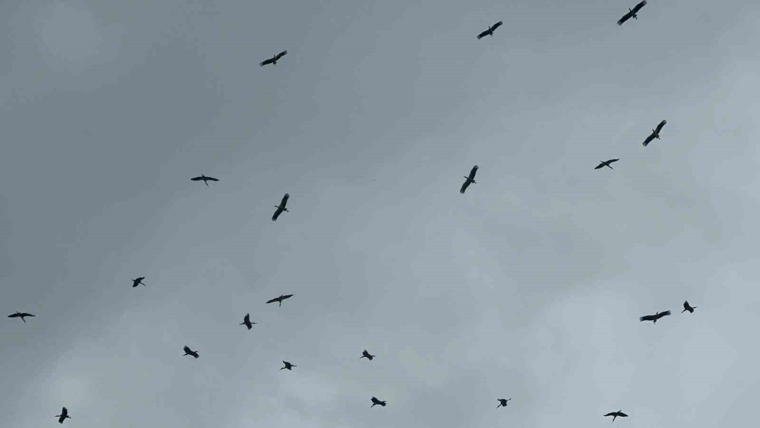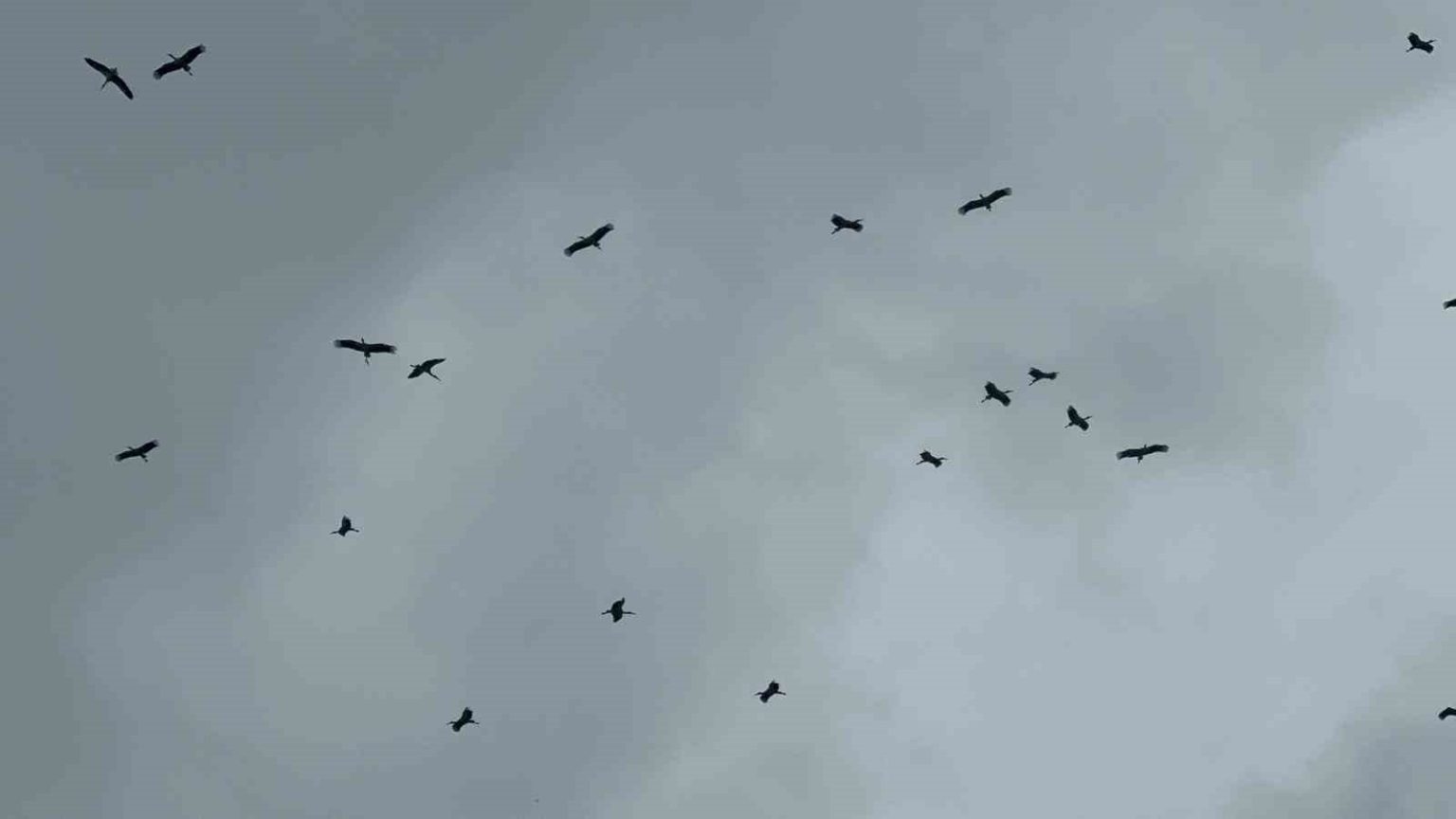 Bursa’ya Kestel ilçesi tarafından Gölbaşı üzerinden giren leylek sürüsü, yağmura rağmen yoluna devam etti.