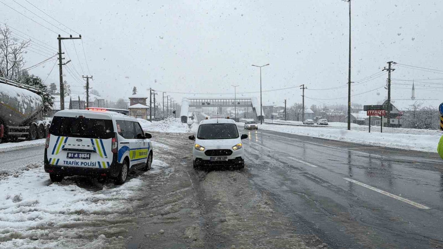 Meteoroloji Genel Müdürlüğü’nden yapılan kuvvetli kar yağışı uyarısının ardından Düzce’nin Kaynaşlı ilçesinde tipi şeklinde kar yağışı başladı. Özellikle Türkiye’nin en önemli geçiş güzergahlarından birisi olarak bilinen Bolu Dağı’nda da etkili olan kar yağışı sebebi ile bölgede karayolları ekiplerinin çalışmaları devam ederken, yolda herhangi bir olumsuzluk yaşanmaması için ağır tonajlı araçların geçişine kapatıldı. İlçe merkezi girişinde durdurulan araçlar Bolu Dağı’na gönderilmezken, diğer araçların ise kontrollü bir şekilde ilerlemesi isteniyor.