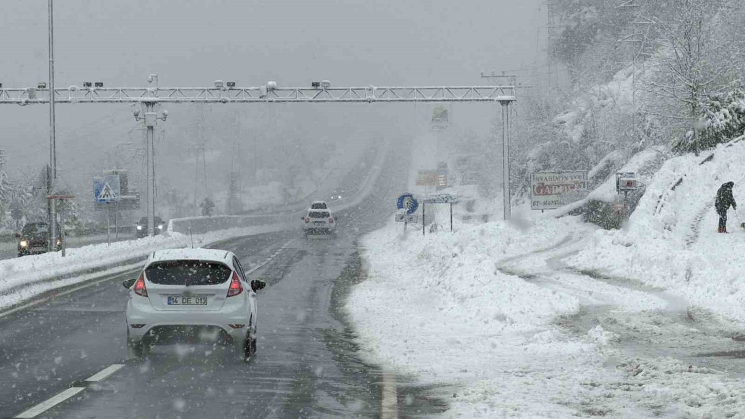 Düzce’de etkili olan kar yağışı sebebi ile Bolu Dağı’nın Ankara istikameti ağır tonajlı araçlara kapatıldı.