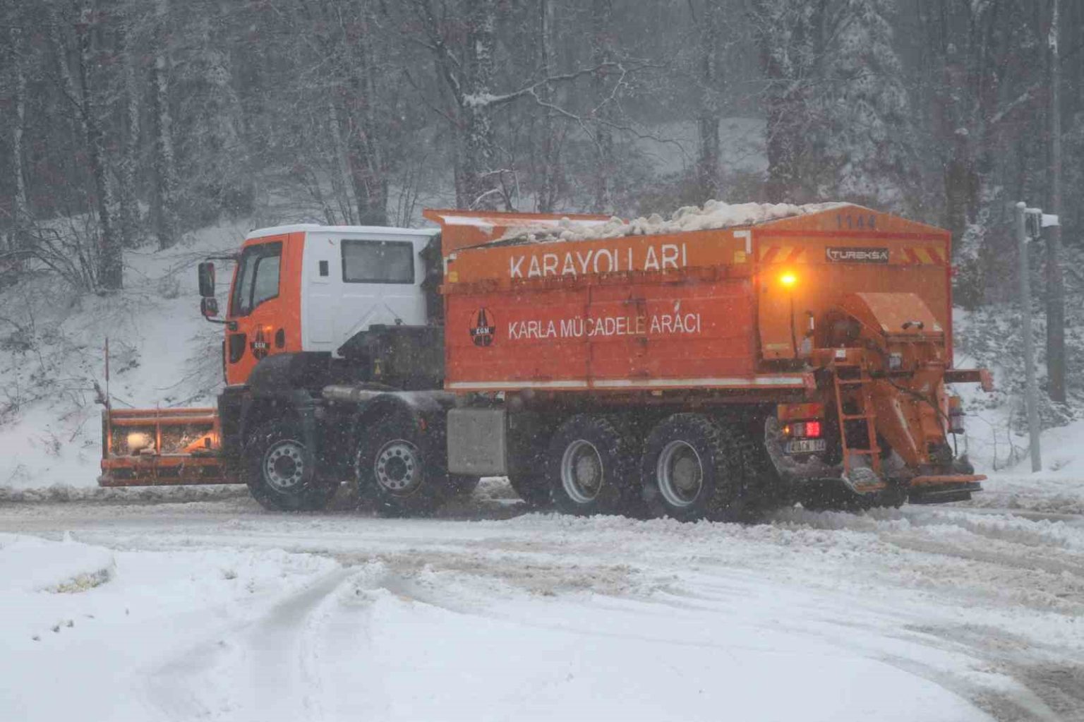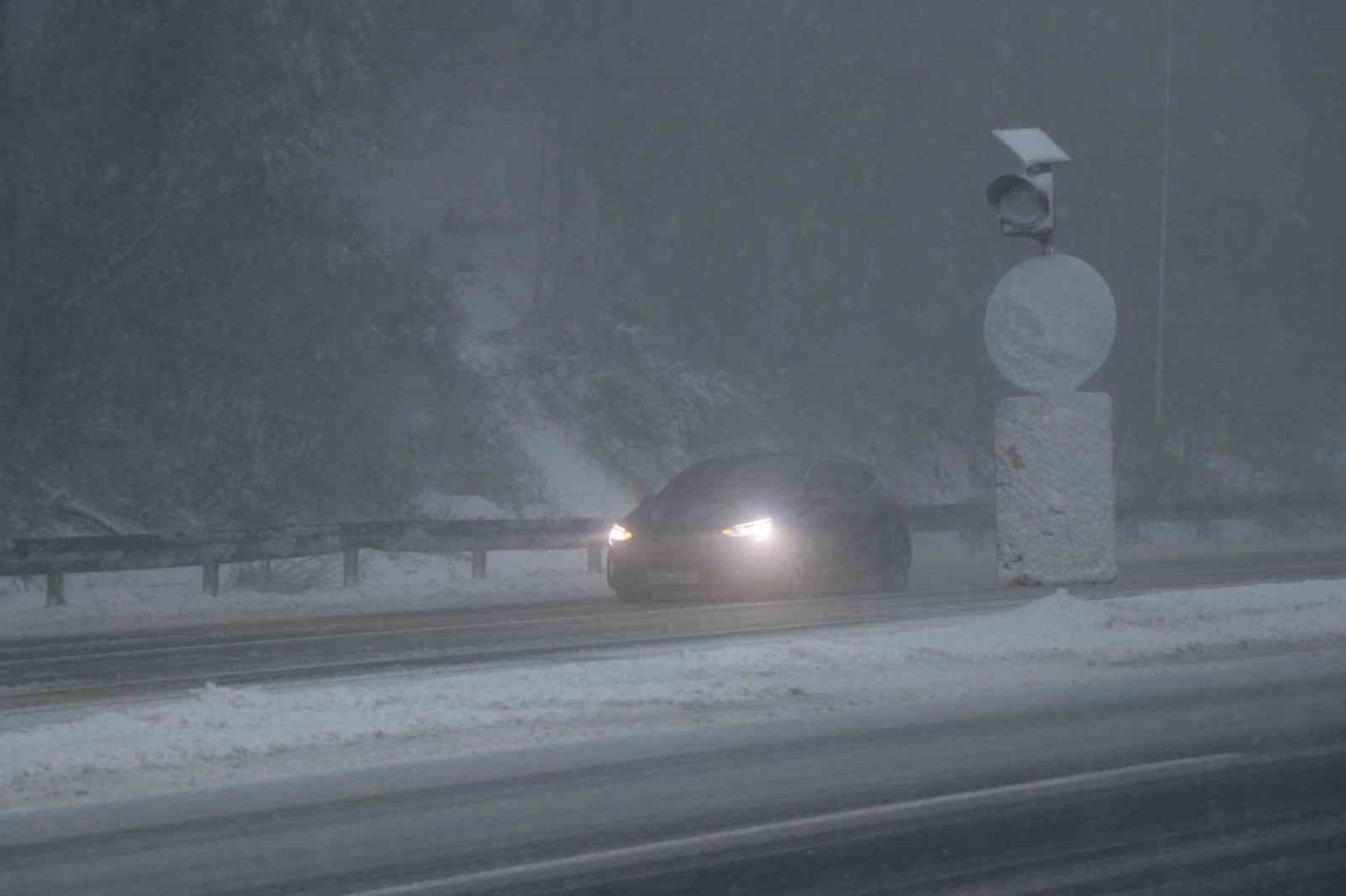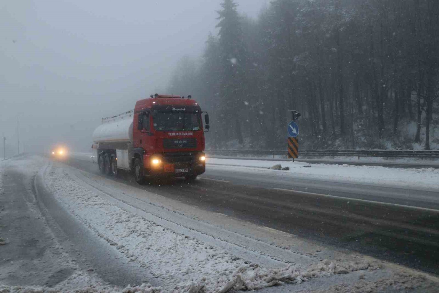 Türkiye’nin en önemli geçiş güzergahlarından D-100 karayolu Bolu Dağı kesiminde kar yağışı etkili oldu, kar kalınlığı 10 santimetreye ulaştı.