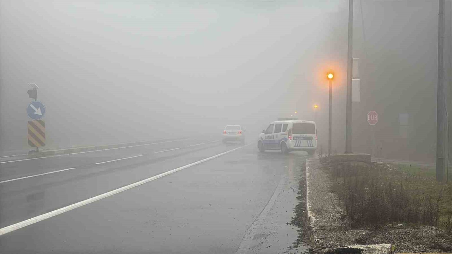 Bolu’da sabah saatlerinden itibaren yüksek kesimlerde yoğun sis ve sağanak etkili oluyor. Özellikle, D-100 kara yolu Bolu Dağı kesimi Yumrukaya, Abant Kavşağı, Elmalık, Bakacak, Seymenler, Karanlıkdere, Bıçkıyanı, Sarıçökek bölgesinde sis ve sağanak nedeniyle sürücüler zor anlar yaşadı. Sis nedeniyle görüş mesafesinin yer yer 30 metreye kadar düştüğü Bolu Dağı’nda sürücüler takip mesafelerini korumaları ve hız yapmamaları konusunda ışıklı tabelalarla uyarılıyor.