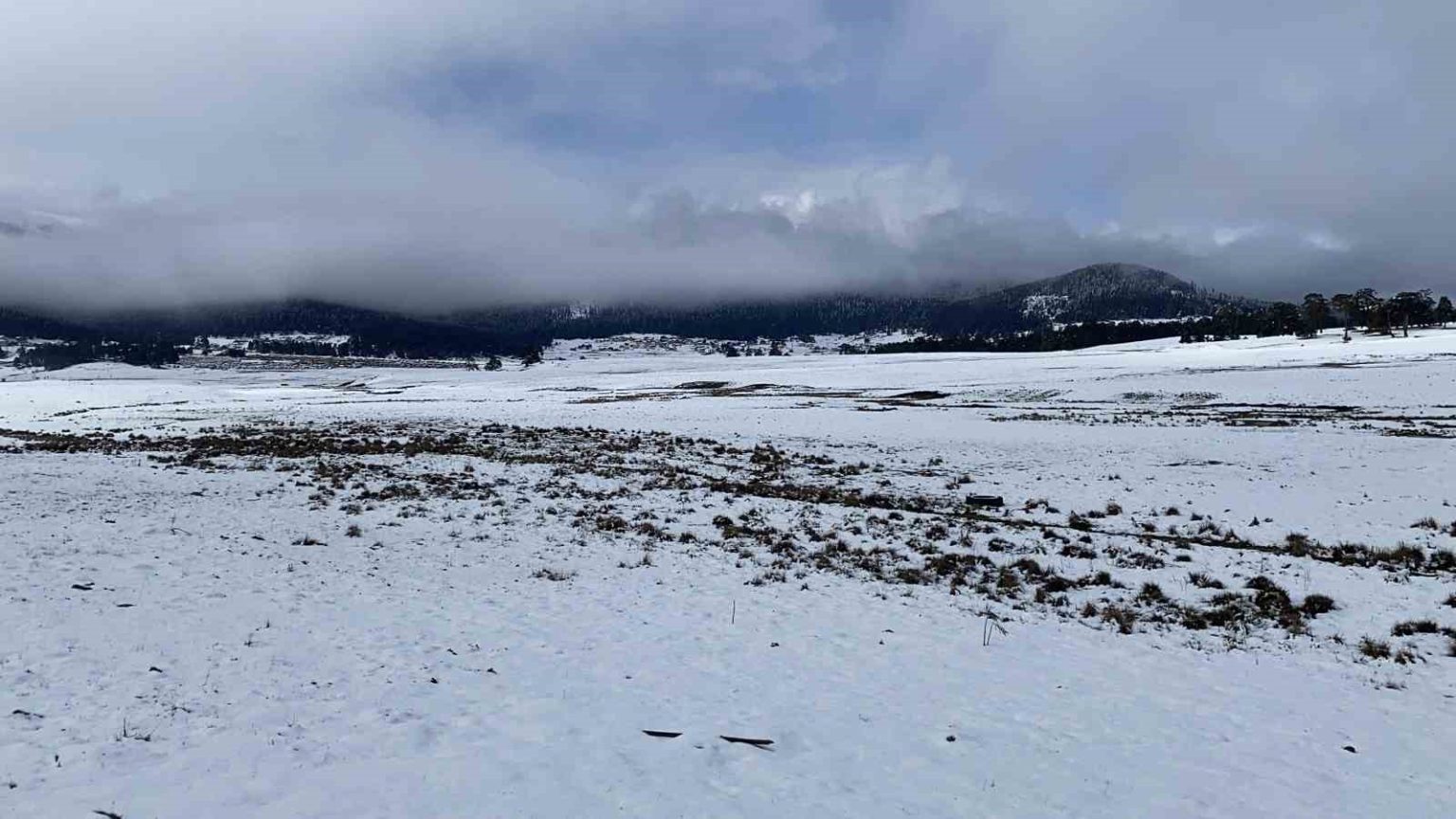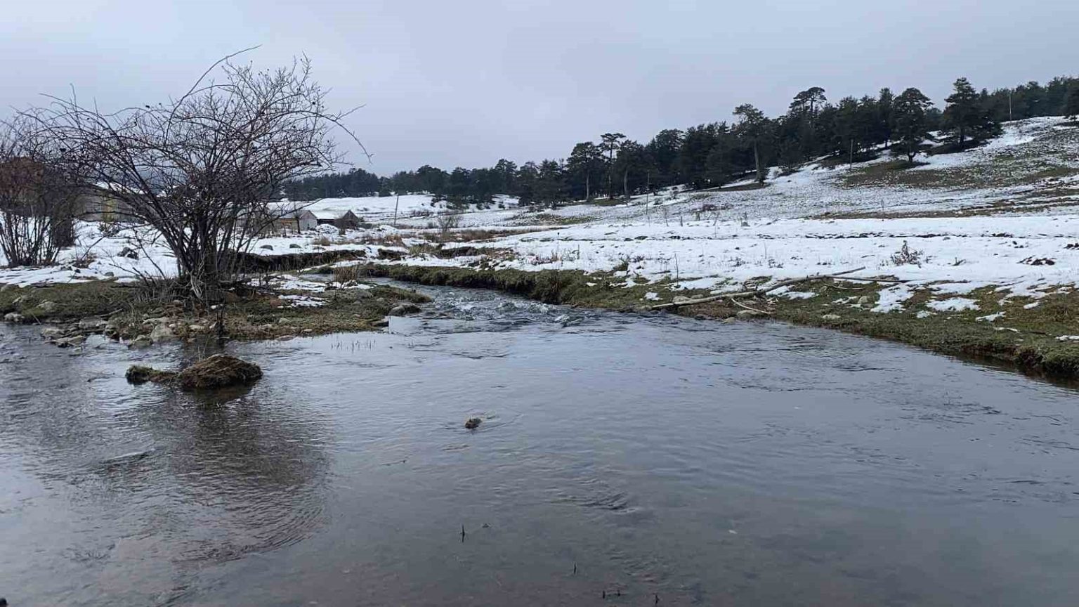 Bölgede yeniden etkili olan kar yağışıyla birlikte yayla beyaza bürünürken, çiğdemler ise kar altında kaldı.