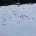 Bolu’nun yüksek kesimlerinde hava sıcaklıklarının artmasıyla açan çiğdemler, etkili olan kar yağışının ardından beyaz örtüyle kaplandı.