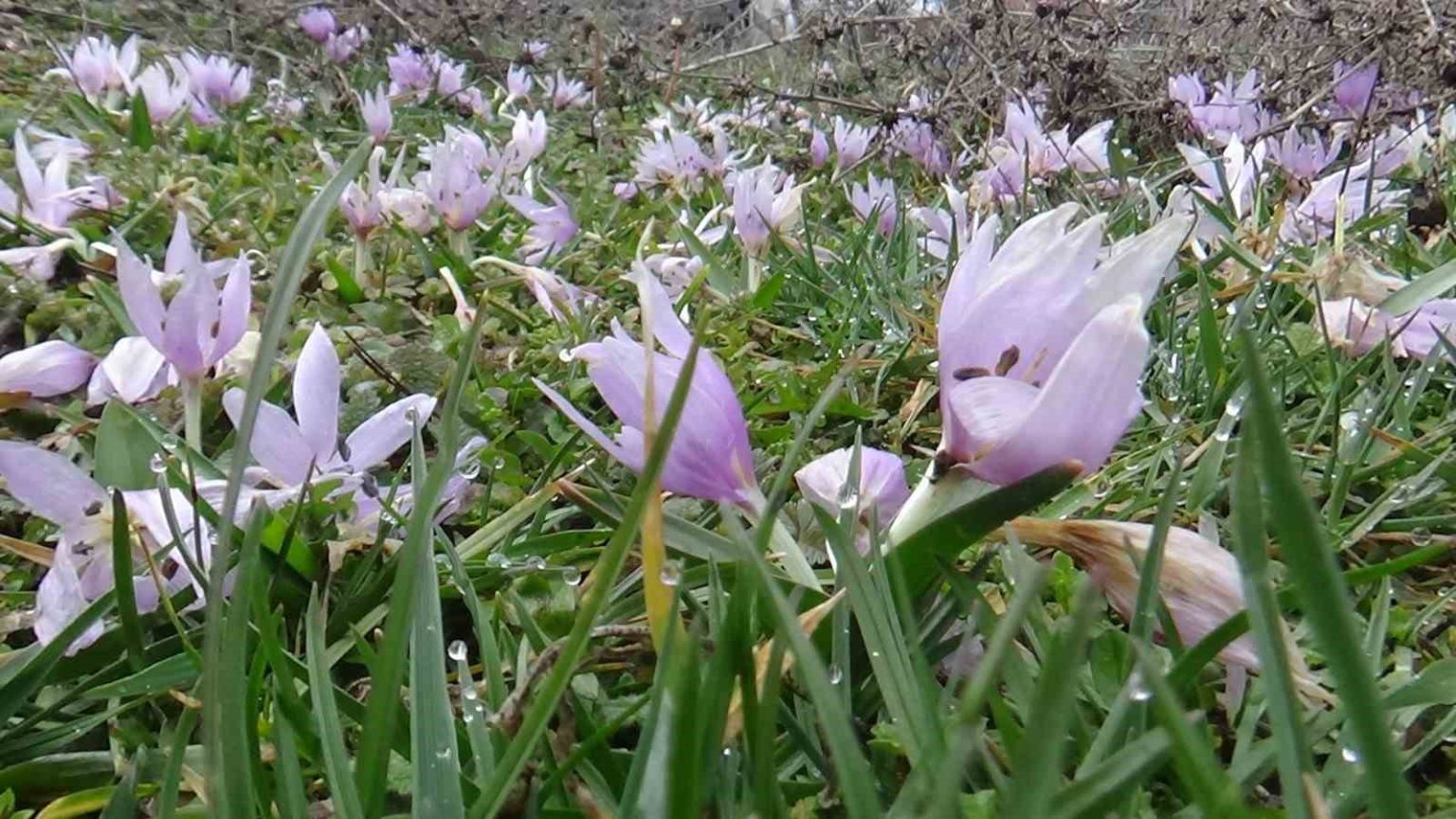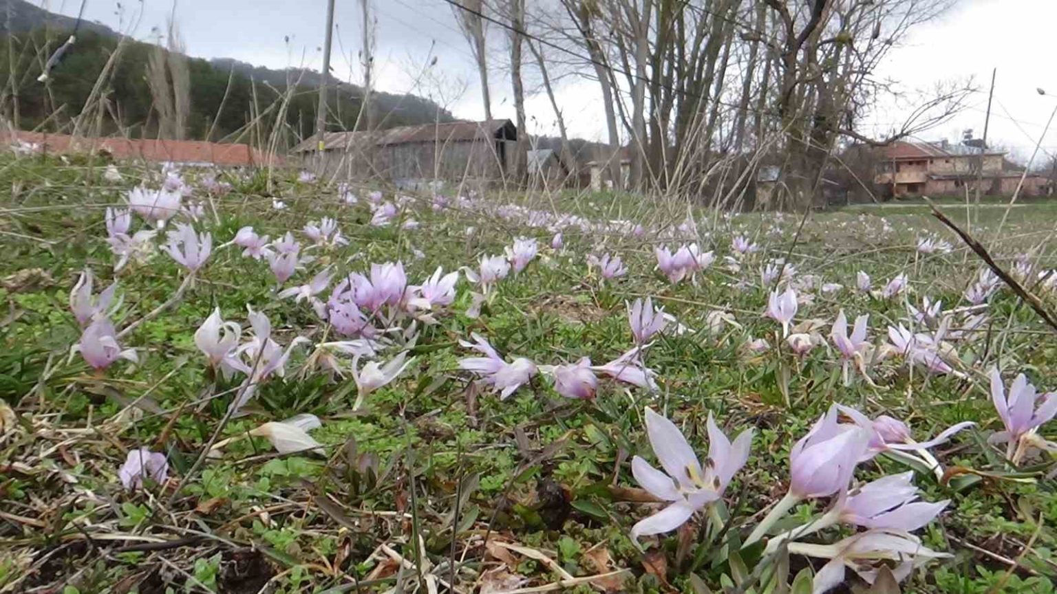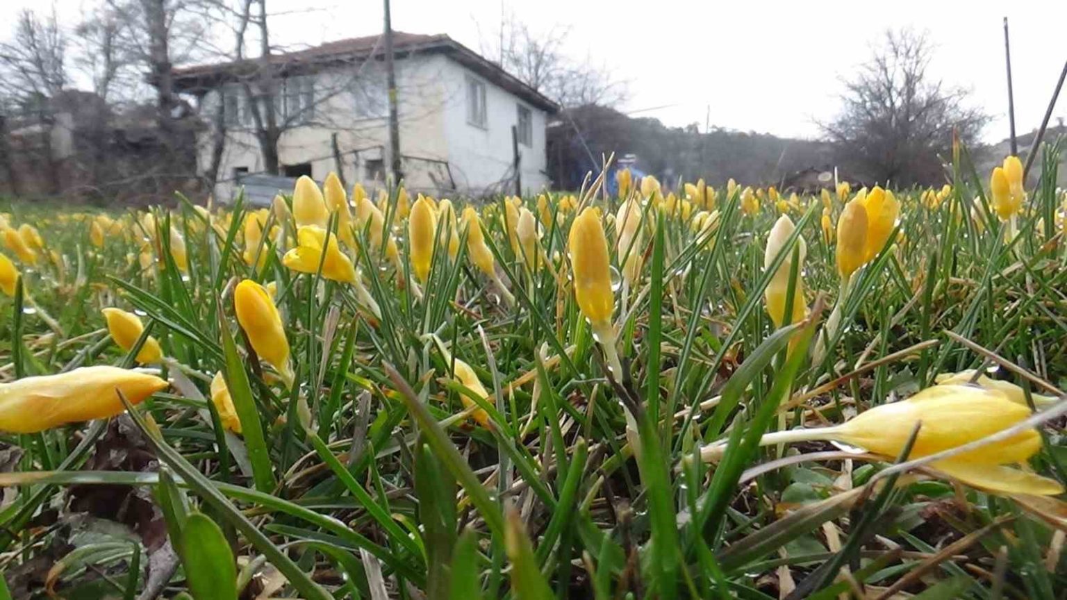 Bolu’nun Mudurnu ilçesinde kış aylarının son günlerinde baharın müjdecisi olarak bilinen çiğdemler çiçek açtı.