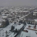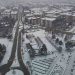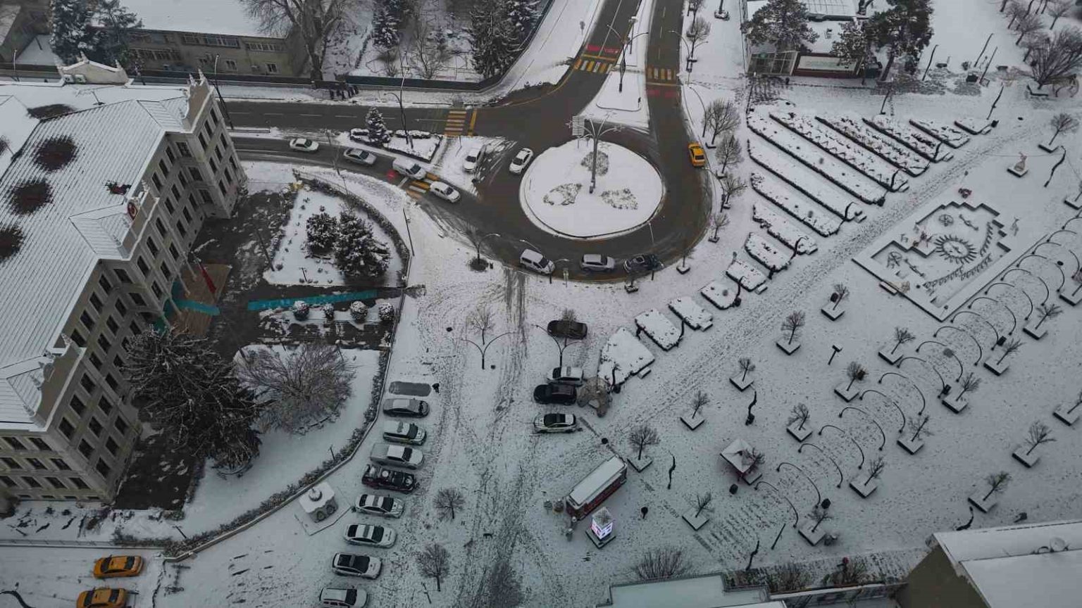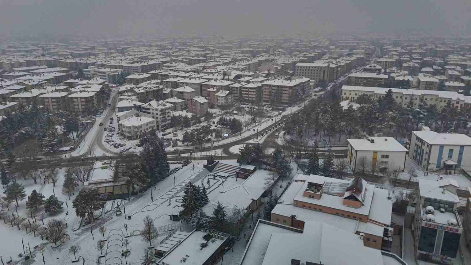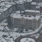 Bolu’da, soğuk havanın etkisiyle birlikte sabah saatlerinde başlayan kar yağışı aralıklarla etkili olmaya devam ediyor. Yağışla birlikte şehir merkezi kısa sürede beyaza büründü. Kentin üzerini kaplayan beyaz örtü, kartpostallık manzaralar oluşturdu. Binaların çatıları, parklar ve yeşil alanlar karla kaplanırken, yağışın oluşturduğu görsel şölen dron ile görüntülendi.