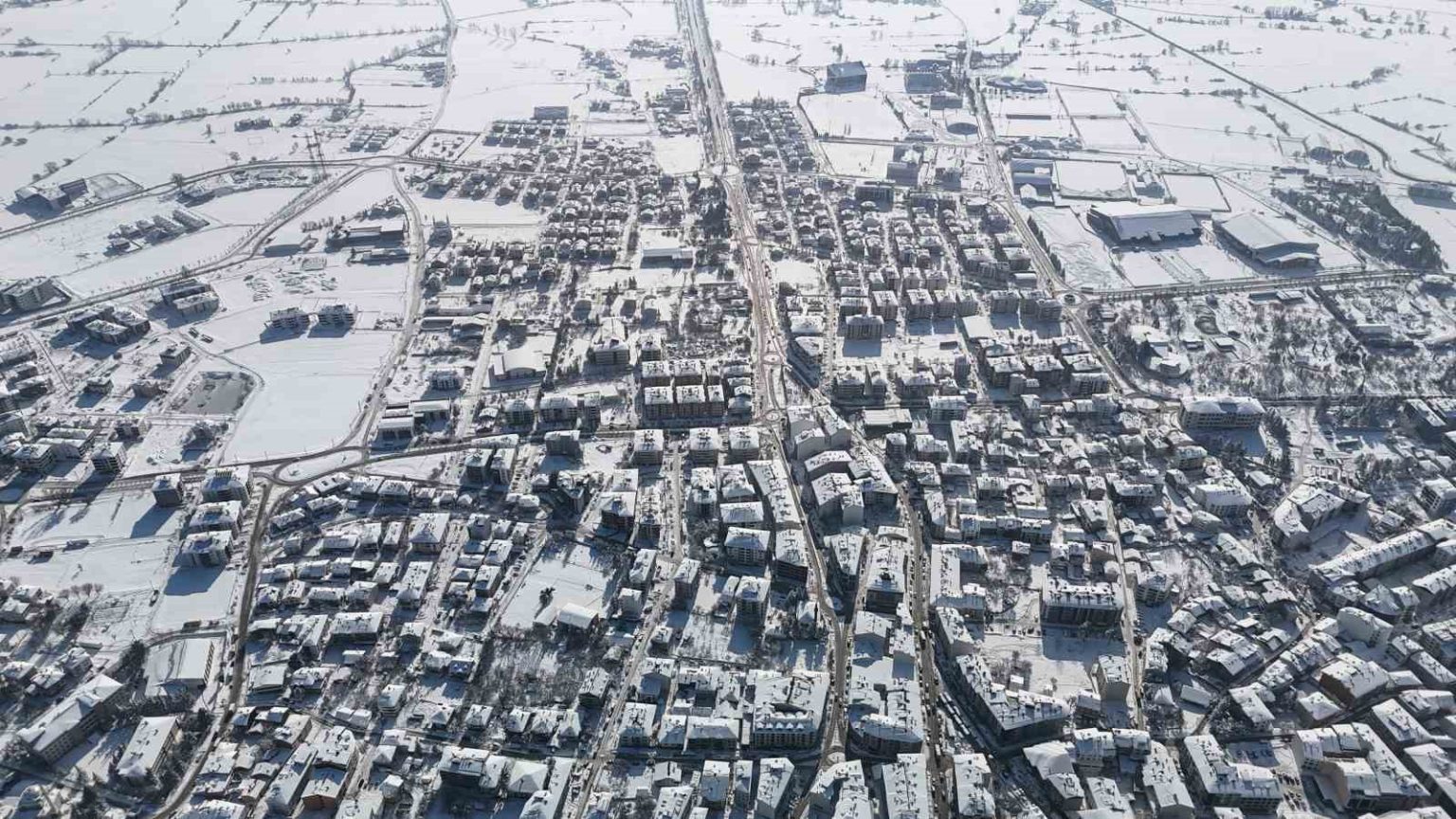 Bolu’da hafta sonu başlayan ve 3 gün boyunca etkisini sürdüren yoğun kar yağışı, şehri tamamen beyaza bürüdü. Kent merkezinde kar kalınlığı yarım metreyi geçerken, ulaşımda aksamalar yaşanmaması için belediye ekipleri ana arterlerde ve ara sokaklarda kar küreme çalışmalarını sürdürdü. Kar yağışının etkisini yitirmesinin ardından Bolu, güne güneşli bir havayla uyandı. Şehrin üzerini kaplayan beyaz örtü, dron ile görüntülendi. Beyaza bürünen şehir merkezi, kartpostallık görüntüler oluşturdu.