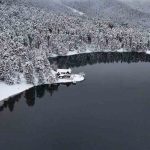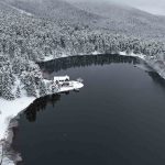 Bolu kent merkezine yaklaşık 13 kilometre uzaklıkta bulunan ve her mevsim yerli ve yabancı turistlerin uğrak noktası olan Gölcük Tabiat Parkı’nda, etkili olan kar yağışı sonrası seyrine doyumsuz manzaralar oluştu. Hava sıcaklığının sıfırın altına düştüğü bölgede, gölün çevresini saran çam ormanları ve simge haline gelen Devlet Konukevi tamamen beyaza büründü. ‘Beyaz gelinliğini’ giyen tabiat parkı, havadan dron ile görüntülendi. Ortaya çıkan kartpostallık manzaralar, görenleri hayran bıraktı.