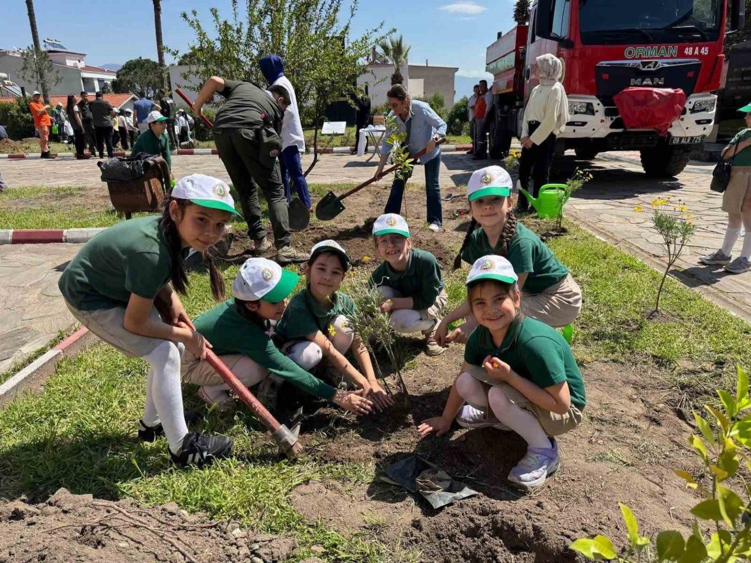Etkinlikte Fatih İlkokulu ile Merkez İlkokulu öğrencileri kendi elleriyle fidanları toprakla buluşturdu. Her çocuğun diktiği ağaca kendi ismini verdiği etkinlikte renkli görüntüler oluştu.