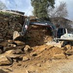 Bozdoğan’da yağmur nedeniyle göçen duvara belediyeden müdahale