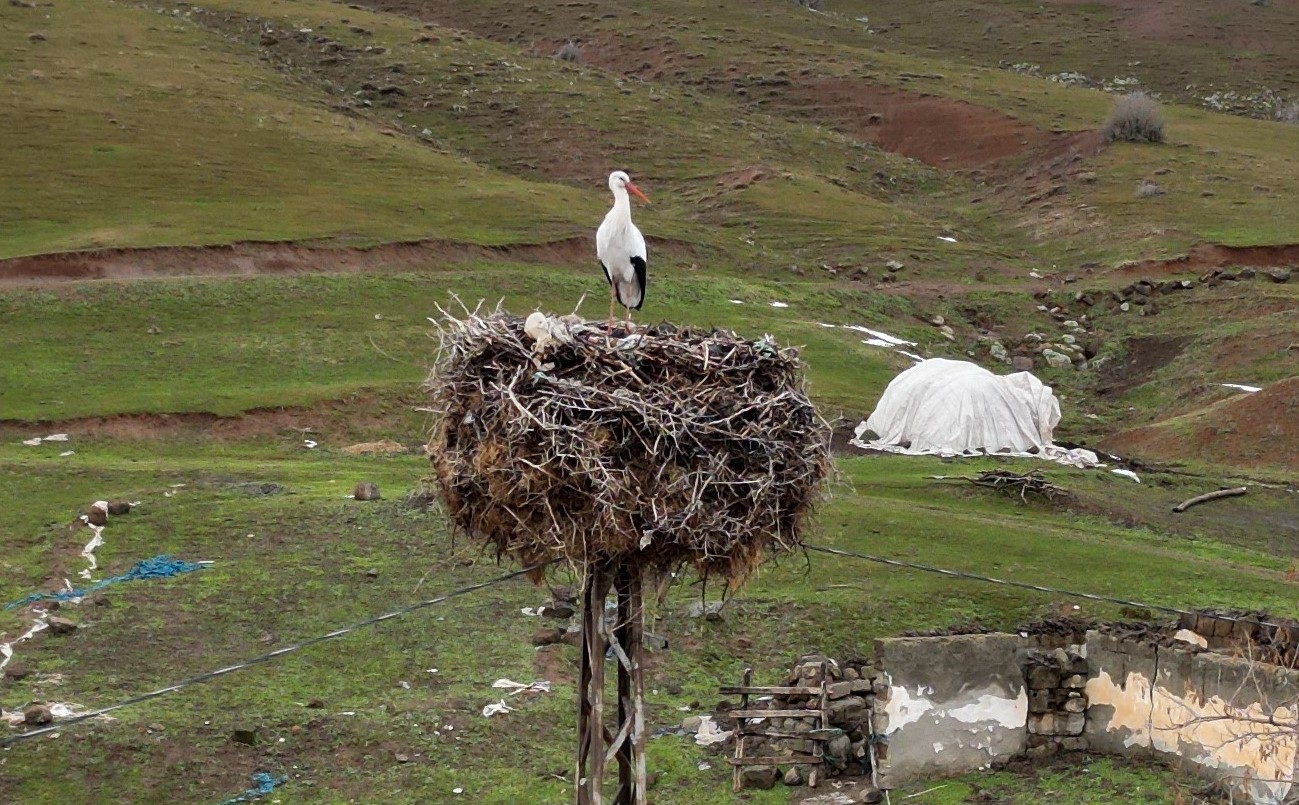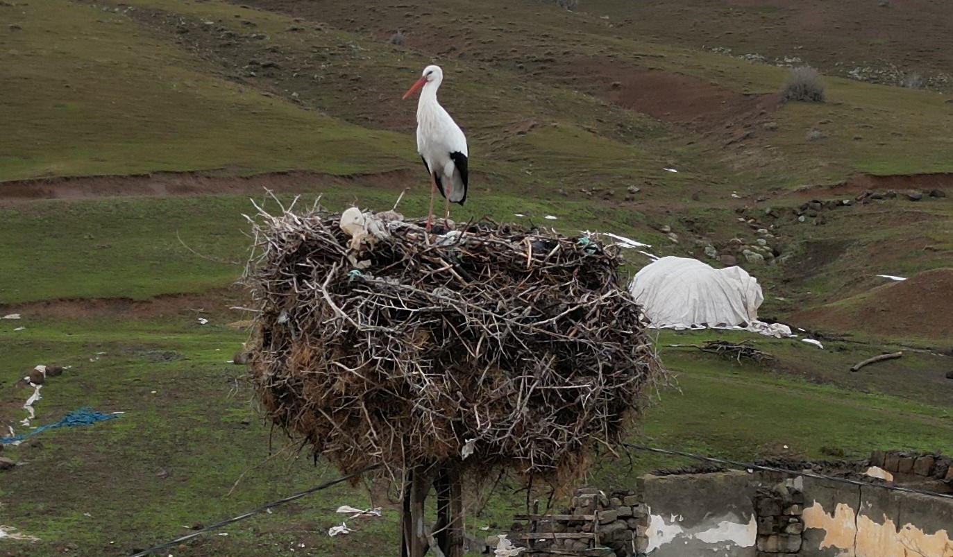 Bitlis’in Güroymak ilçesine bağlı Budaklı köyünde bulunan bir leylek, yıllardır göç etmeyerek aynı yuvada kalmaya devam ediyor.