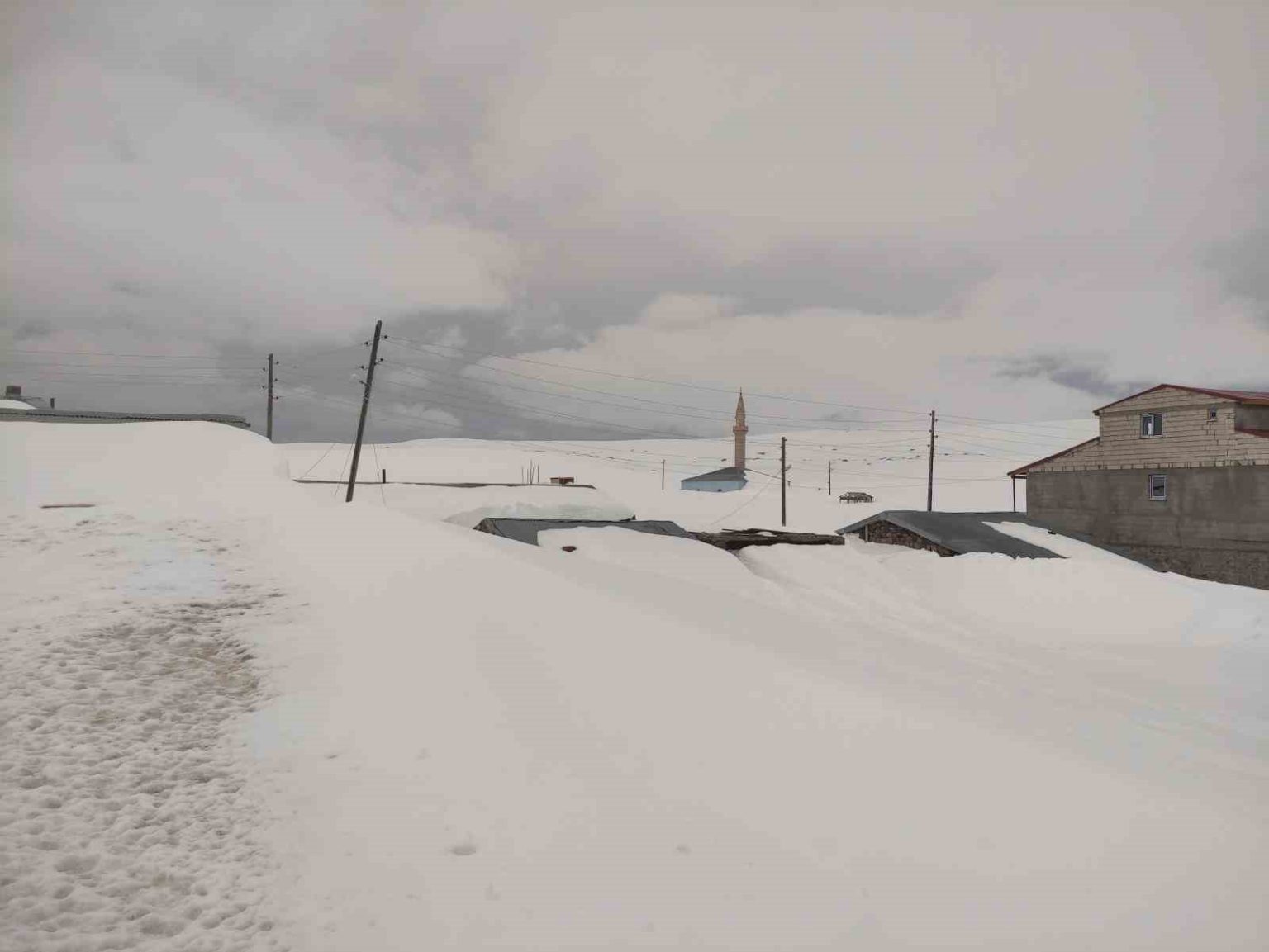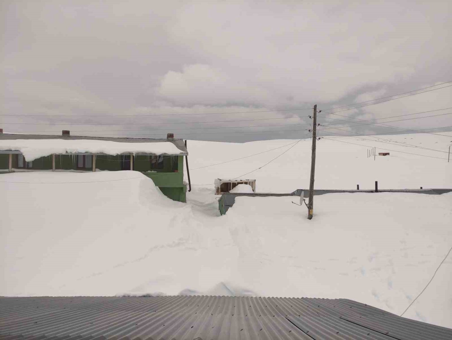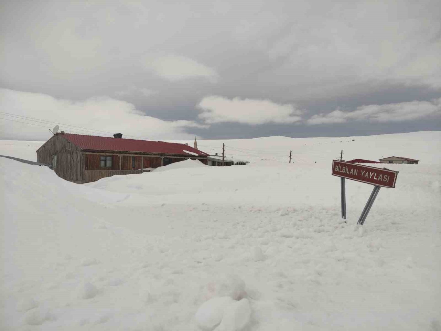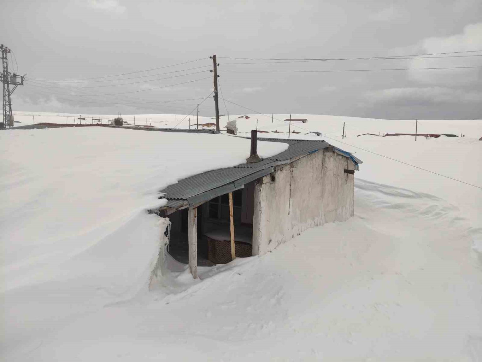 Kışın yoğun kar ve fırtınanın etkisiyle tamamı karla kaplanan Ardahan’ın 2 bin 581 rakımlı Bülbülan Yaylası’ndaki ev ve iş yerleri nisan ayında hala kara gömülü.