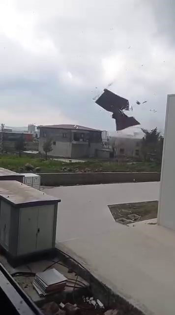 Diyarbakır’da şiddetli fırtına nedeni ile iki katlı bir binanın çatısı uçtu. Amerika’daki şiddetli kasırgaları hatırlatan o anlar cep telefonu kamerasına yansıdı.