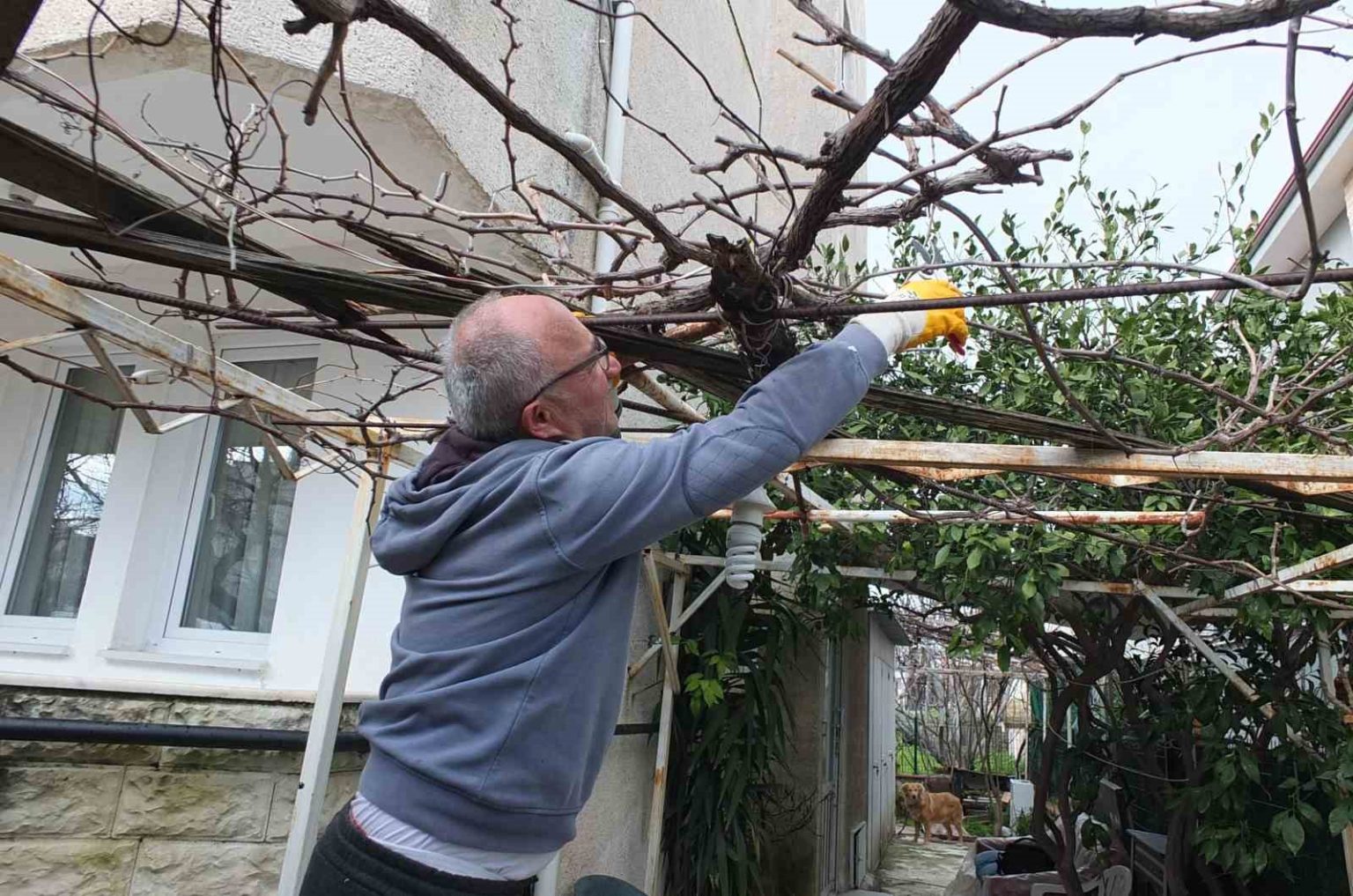 Burhaniye’de ilkbahar yaklaşırken, asmalarda budama sezonu başladı. Ören Mahallesinde oturan 4 çocuk babası Mustafa Devrim de, bahçelerde budamaya başladı. Yeşili çok sevdiğini kaydeden Mustafa Devrim, “Bahçemizdeki ağaçları kış aylarında budadık. Şimdide asmalarda budama yapıyoruz. Ben komşularımada yardımcı oluyorum. Budama işi bilgi ve beceri ister. Ben de bu işi ustalardan öğrendim” dedi.