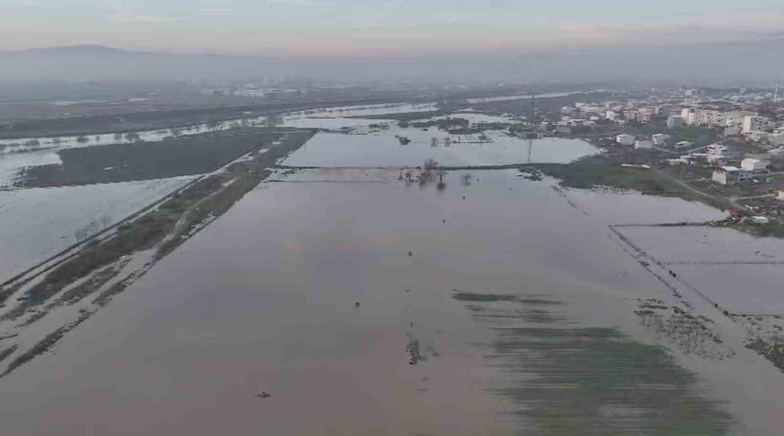 Bursa’da sağanak yağış ve kar sularının erimesi ovada binlerce dekar ekili alanın sular altında kalmasına sebep oldu. Şubat ayı yağış ortalamasına 3 günlük yağışla ulaşan Karacabey ilçesinde tarım alanları sular altında kaldı.