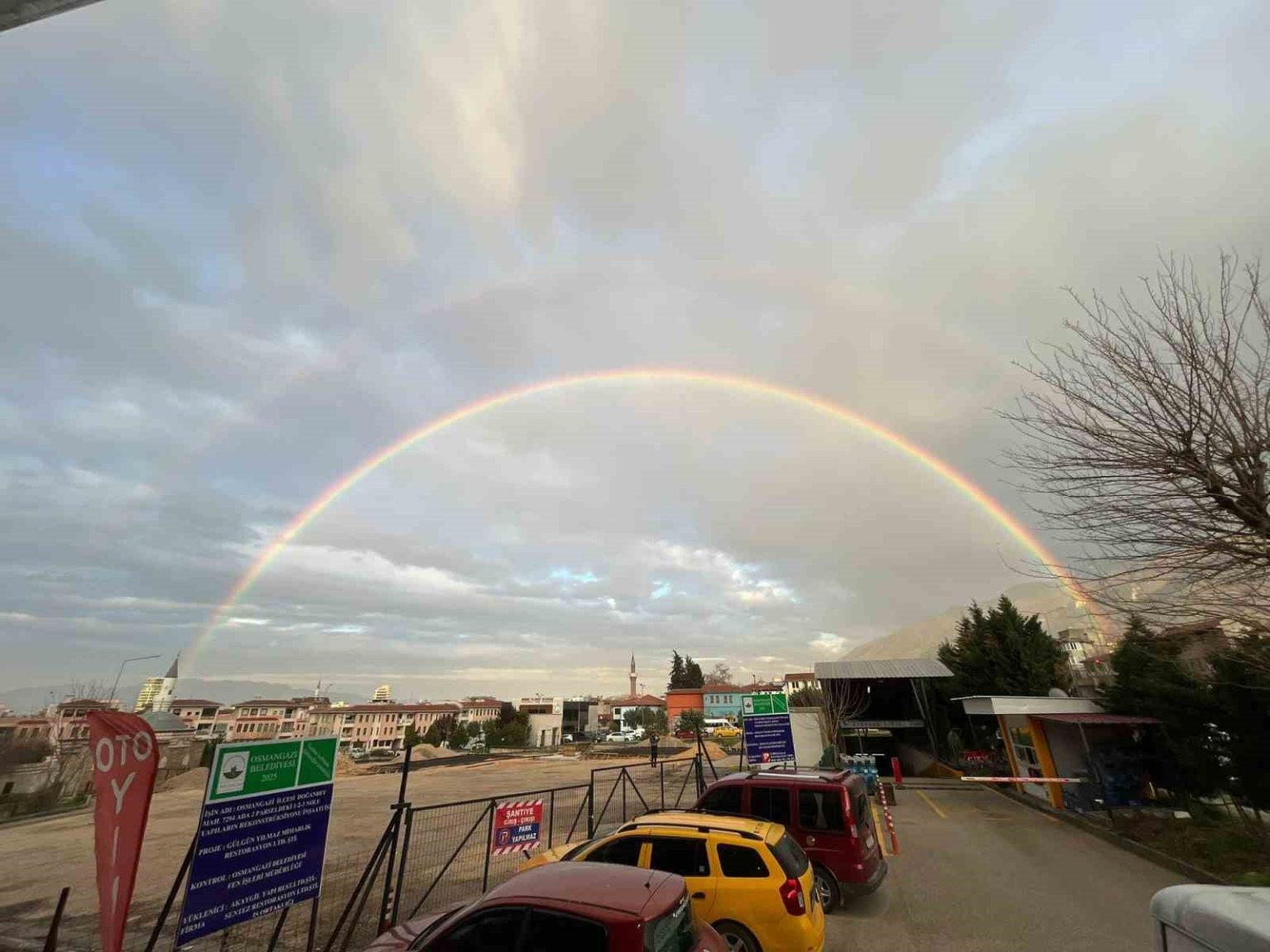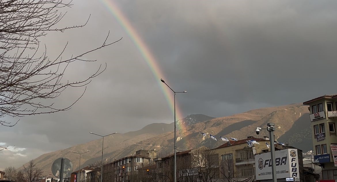 Bursa’da yağmurun ardından oluşan gökkuşağı, izleyenleri mest etti.