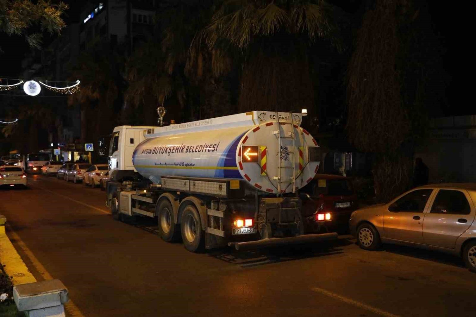 Aydın Büyükşehir Belediyesi ekipleri, vatandaşların güne temiz bir kentte başlaması için gece saatlerinde cadde ve kaldırımlarda kapsamlı temizlik çalışması yürüttü. 24 saat esasına dayalı mesaiyle sürdürülen çalışmalarla kent genelinde sokaklar sabaha kadar titizlikle yıkandı ve düzenlendi.