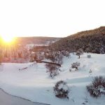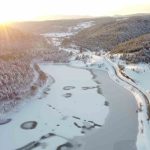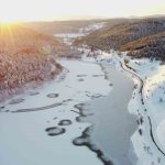 Karabük’ün Eflani ilçesinde kar yağışı ve eksi 20 dereceye kadar düşen hava sıcaklıkları sonrası yüzeyi buz tutan göletler, oluşan kartpostallık manzaralarla dron ile görüntülendi.