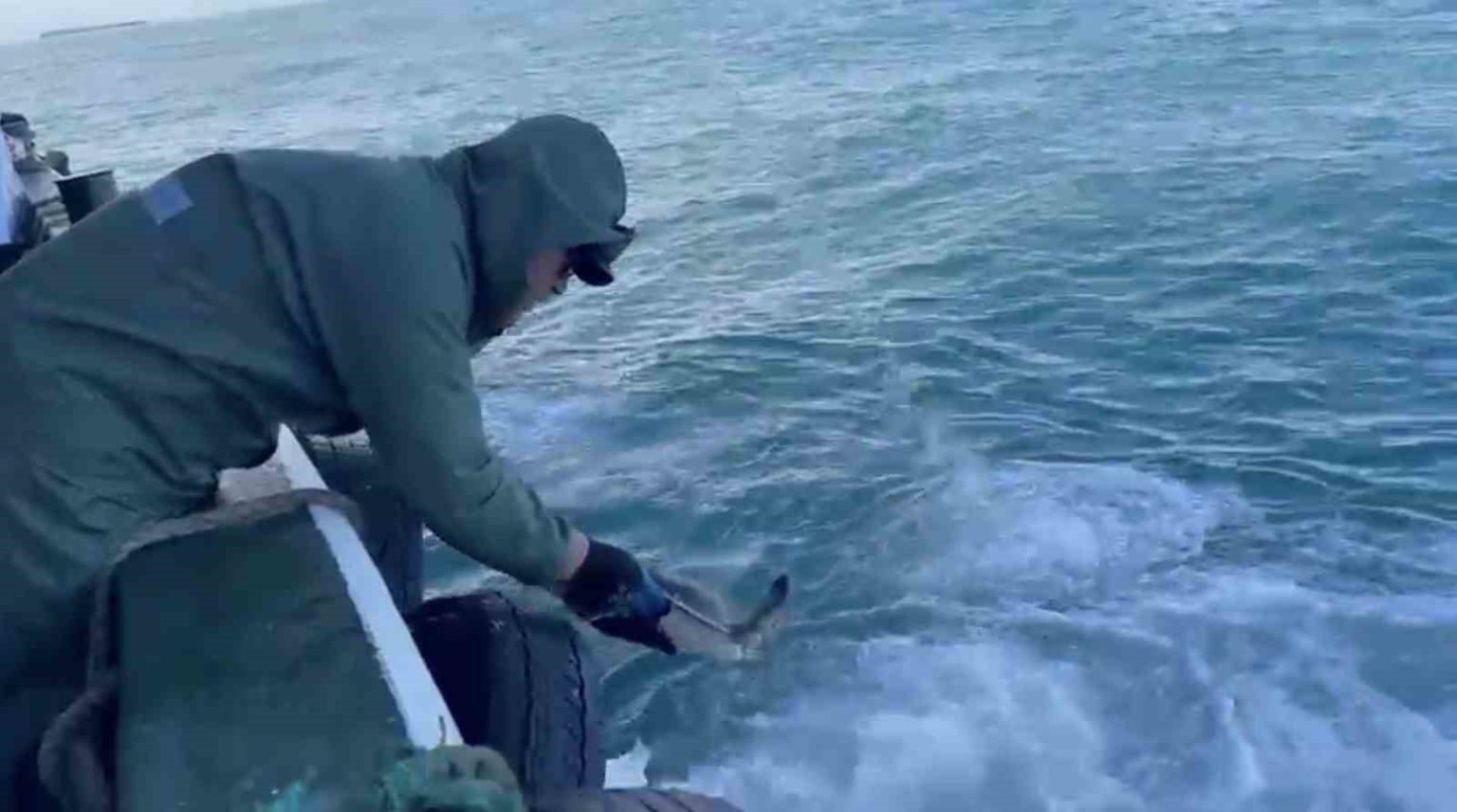 Çanakkale’de balıkçılar ağlarına takılan caretta carettayı kurtardılar