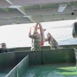 Gelibolu açıklarında dün akşam saatlerinde ‘Çalı Balıkçılık’ isimli tekneyle avlanan balıkçılar bir süre sonra ağlarını toplamaya başladı. Balıkçılar ağlarını topladığı sırasında ağın için büyük bir balık olduğunu fark ettiler. Ağların içerisini kontrol eden balıkçılar 2 ‘kamçı kuyruk’ cinsi köpek balığı ile karşılaştı. Balıkçılar köpek balıklarını ağlardan kurtararak onları doğal ortamları denize geri saldı.