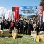 Çanakkale ilinde 2025 yılında meydana gelen orman yangınlarında zarar gören arıcılara kovan temini projesi çerçevesinde kovan teslim töreni gerçekleştirildi.