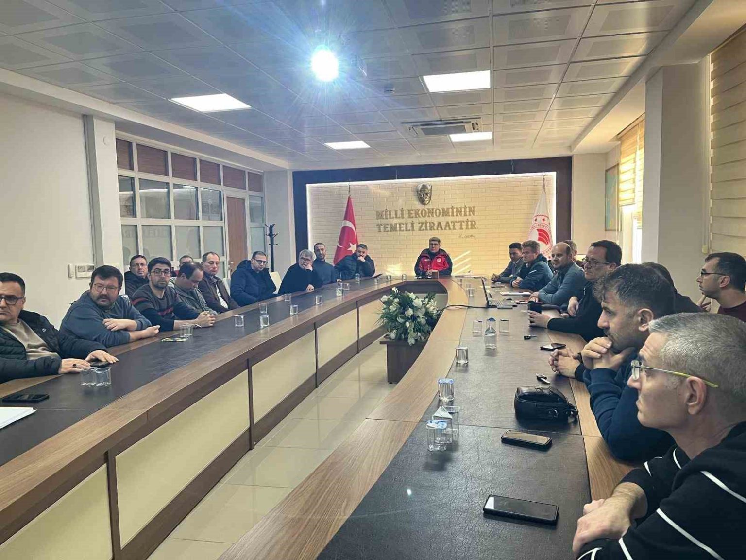 Çanakkale İl Tarım ve Orman Müdürlüğü toplantı salonunda, il ve ilçe Tarım ve Orman Müdürlüğü personelinin katılımıyla ‘Hayvan Hastalıkları ve Tedbirleri Konusunda Değerlendirme Toplantısı’ düzenlendi. Toplantıda, 2025 yılı içerisinde ilde görülen hayvan hastalıkları, muhtemel giriş ve çıkış yolları, alınabilecek tedbirler, sahada karşılaşılan eksik uygulamalar ile iyileştirici ve önleyici çalışmalar ele alındı. SAT-1 serotipi Şap Hastalığı ile mücadele çerçevesinde aşılama çalışmaları ve hayvan hareketlerinin kısıtlanması başta olmak üzere salgının kontrol altına alınmasına yönelik alınması gereken tedbirler değerlendirildi. Saha çalışmaları çerçevesinde; araç, ekip ve ekipman kapasitesinin etkin kullanımı, aşılamanın planlanan tarihlerde tamamlanması ve aşı zayiatının önlenmesi amacıyla köy, mahalle bazlı planlama yapılmasının önemi vurgulandı. Aşılama esnasında işletme hayvan varlığı güncelleme işlemlerinin mutlaka gerçekleştirilmesi gerektiği ifade edildi. Çanakkale’de görülen BTV-8 Serotipi Mavidil Hastalığı ile etkin mücadele için gelen ihbarların ivedilikle değerlendirilmesi, numune alınması ve aşı temininin ardından uçucu sineklerin aktif olduğu dönem öncesinde aşılama çalışmalarının tamamlanması gerektiği belirtildi. 2025 yılında aşılama oranlarının düşük kaldığı hastalıklar için programların titizlikle hazırlanması ve aşılama oranlarının istenilen seviyelere çıkarılmasına yönelik çalışmalar ele alındı. Toplantıda yapılan değerlendirmeler doğrultusunda 2026 yılı yol haritası oluşturuldu.