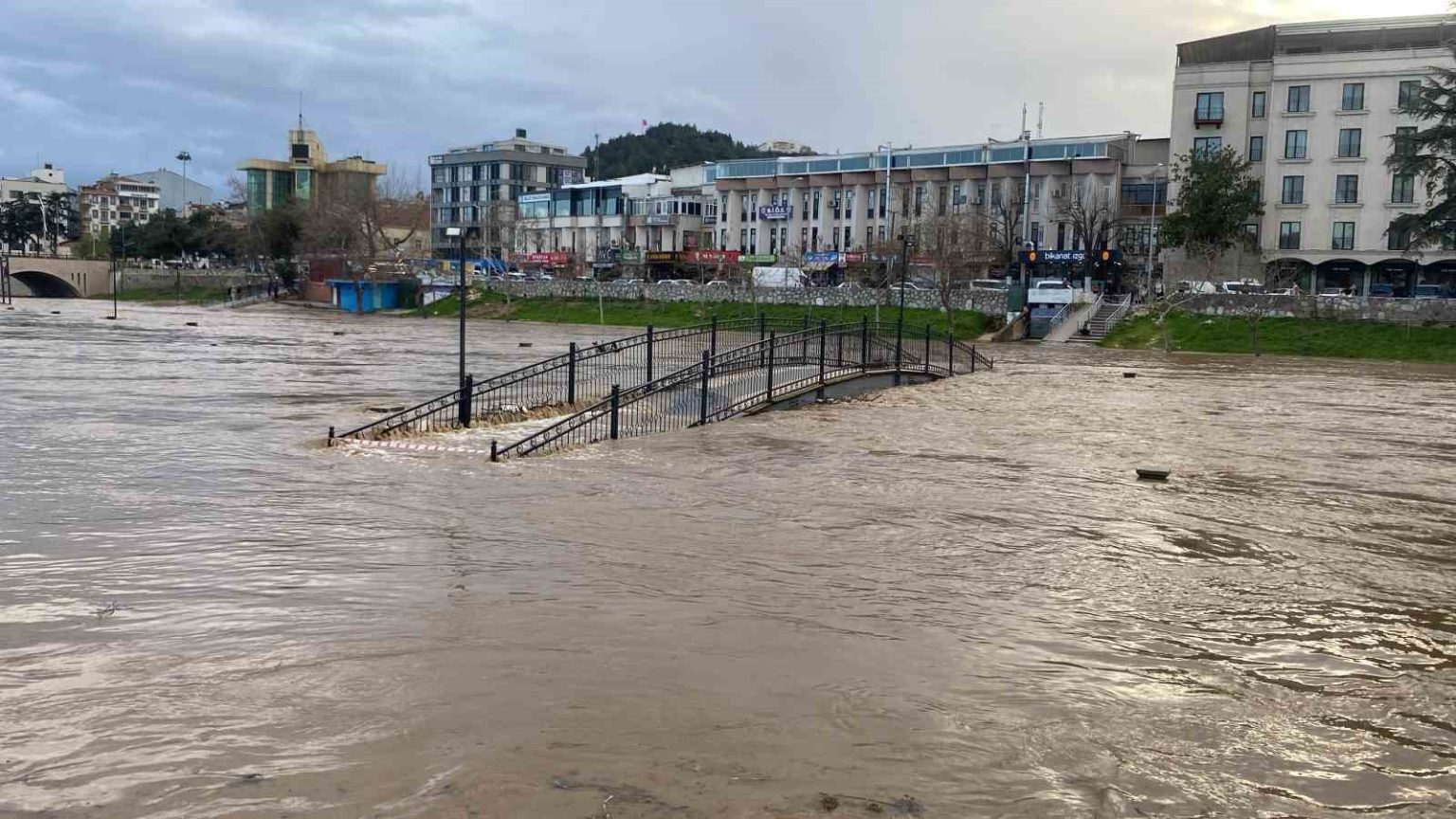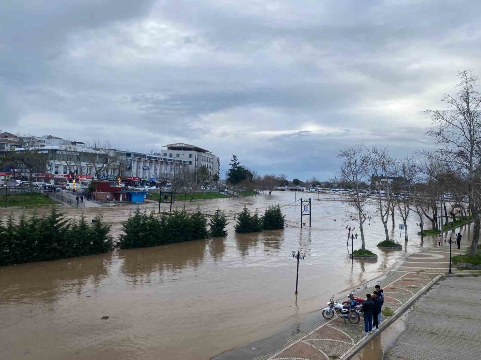 Çanakkale’nin Biga ilçesinde etkili olan yağmur nedeniyle ilçe merkezinden geçen Kocabaş Çayı taştı. Otopark olarak kullanılan alan sular altına kaldı.